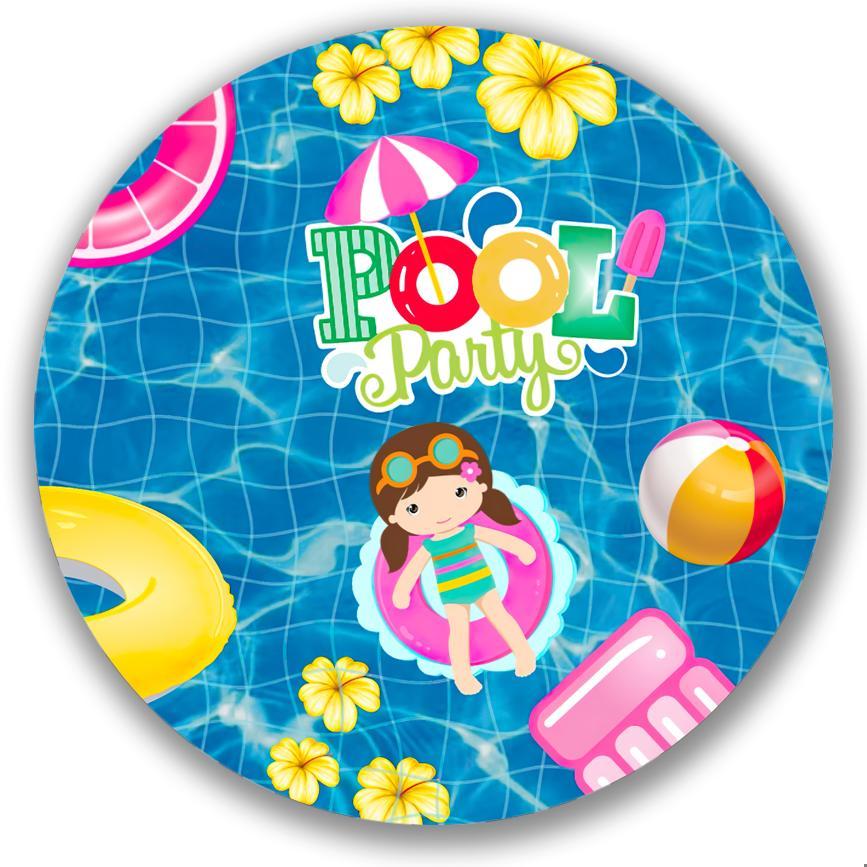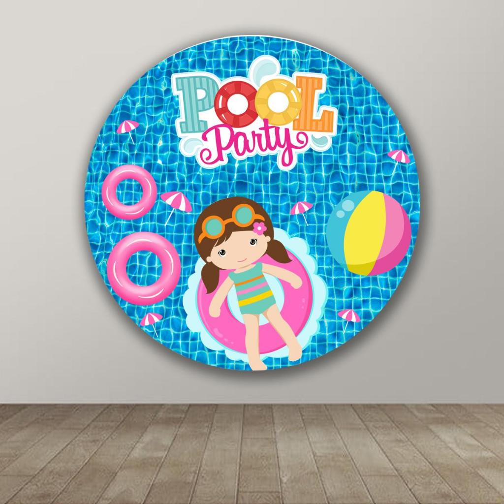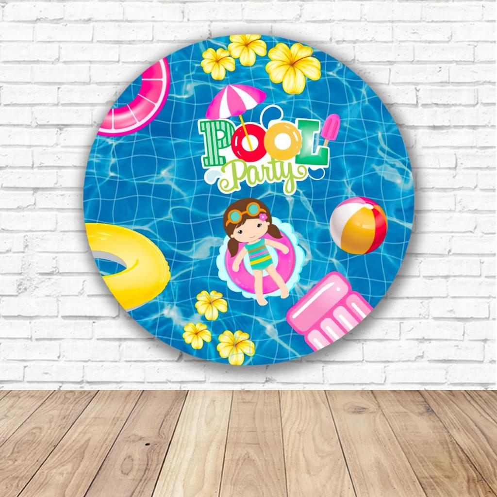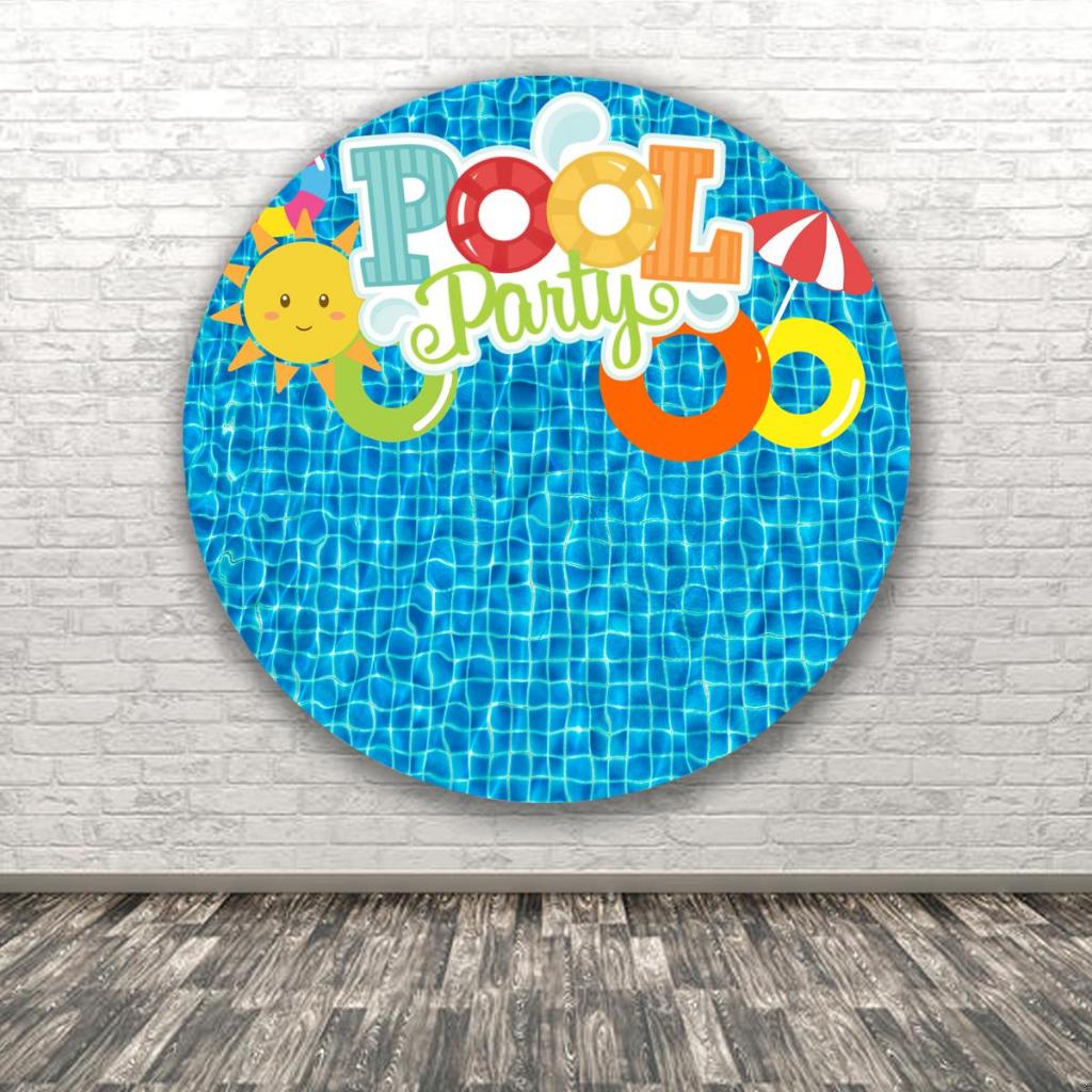 Painel Redondo Tematico Pool Party Festa Na Piscina Menina Aniversario Menino Festa Tecido Malha Sublimado Evento
