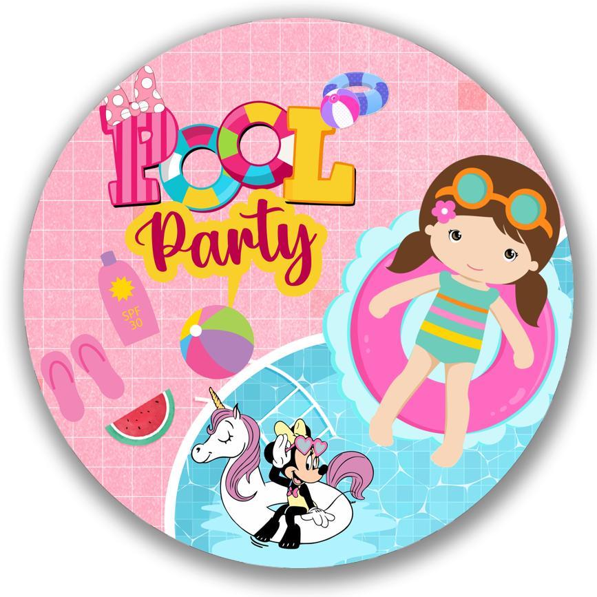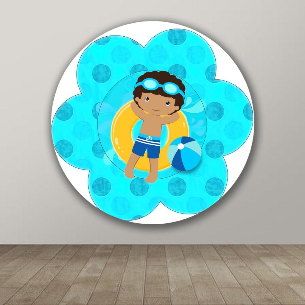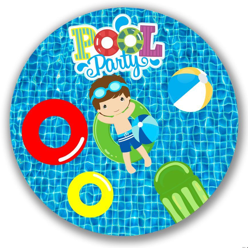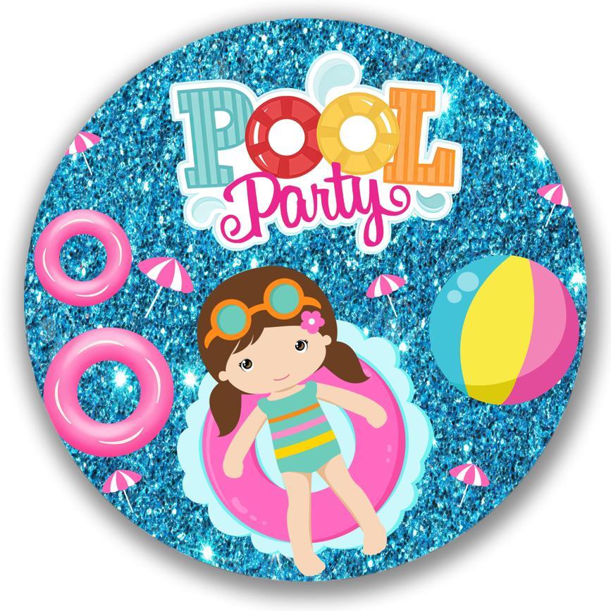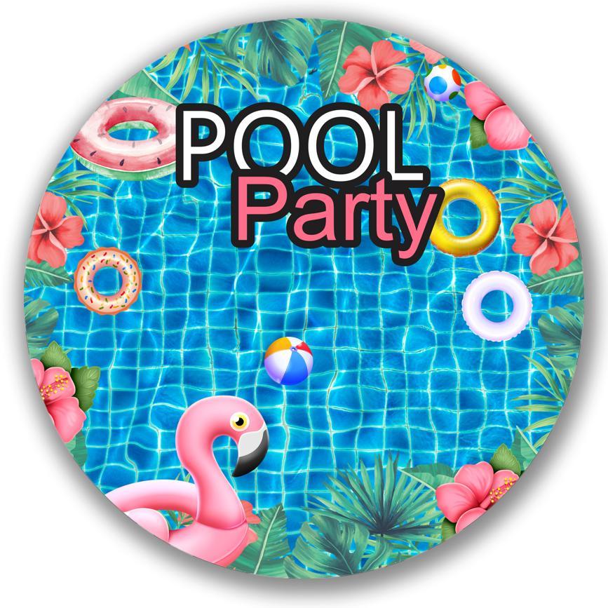 Painel Redondo Tematico Pool Party Festa Na Piscina Menina Aniversario Menino Festa Tecido Malha Sublimado Evento