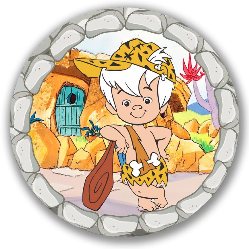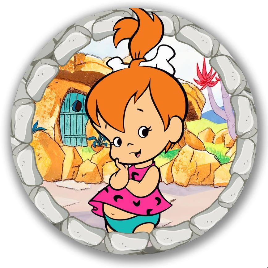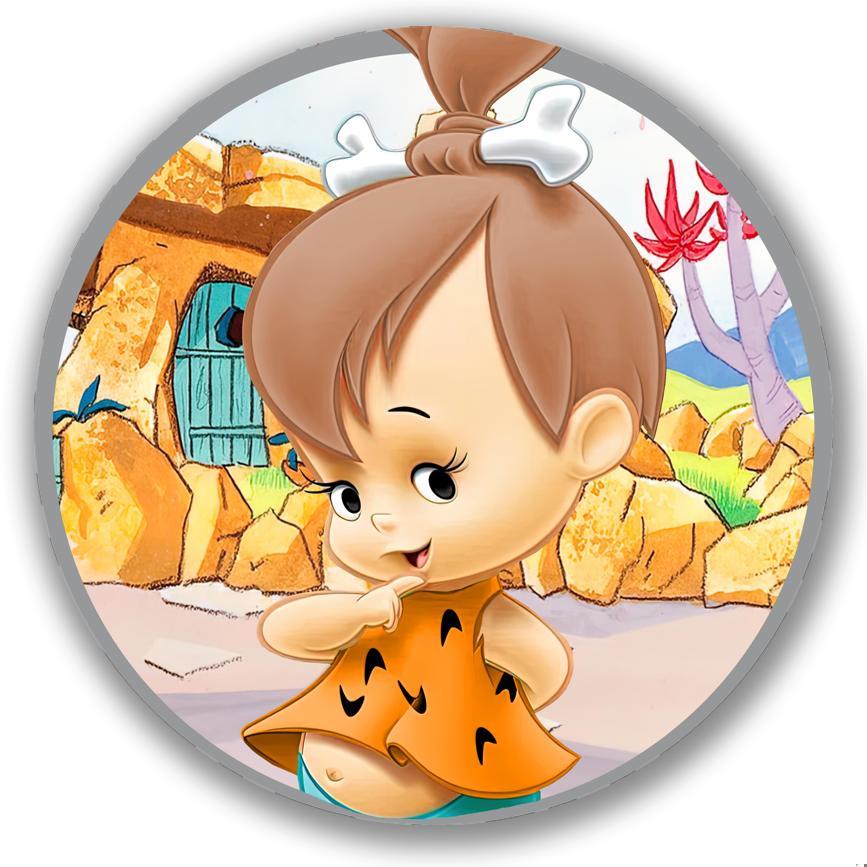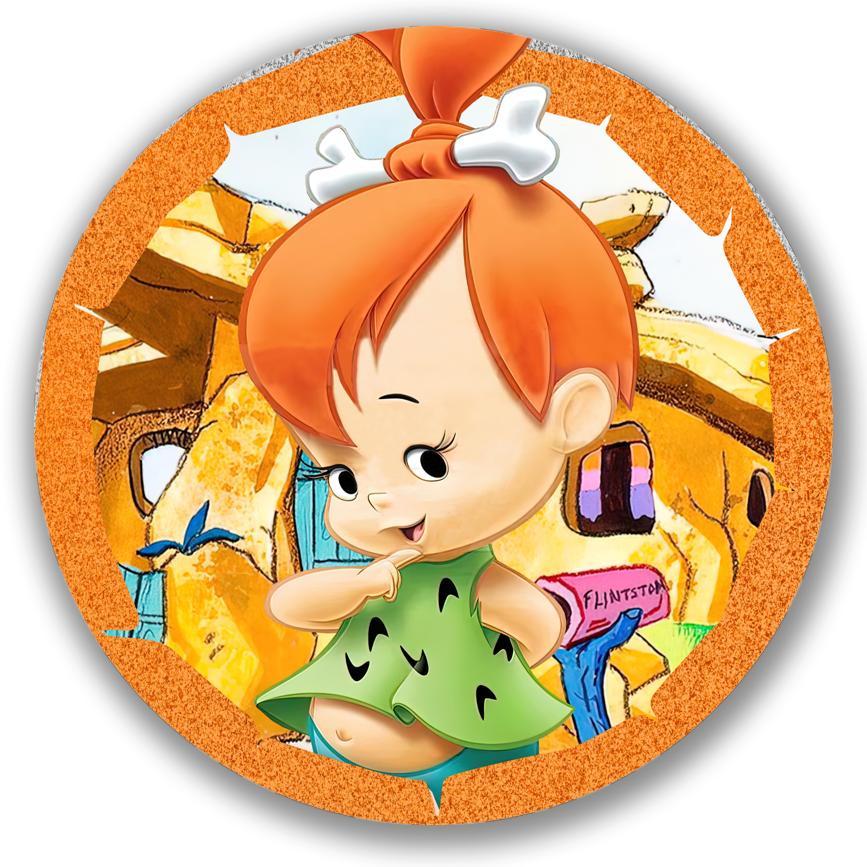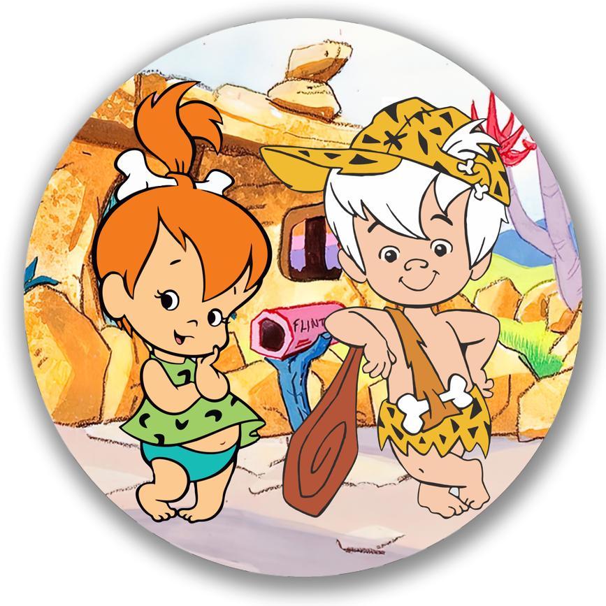 Painel Redondo Tematico Pedrita e BamBam flintstones Desenho Descoração Festa Evento Cenario Fotografico Malha Sublimada