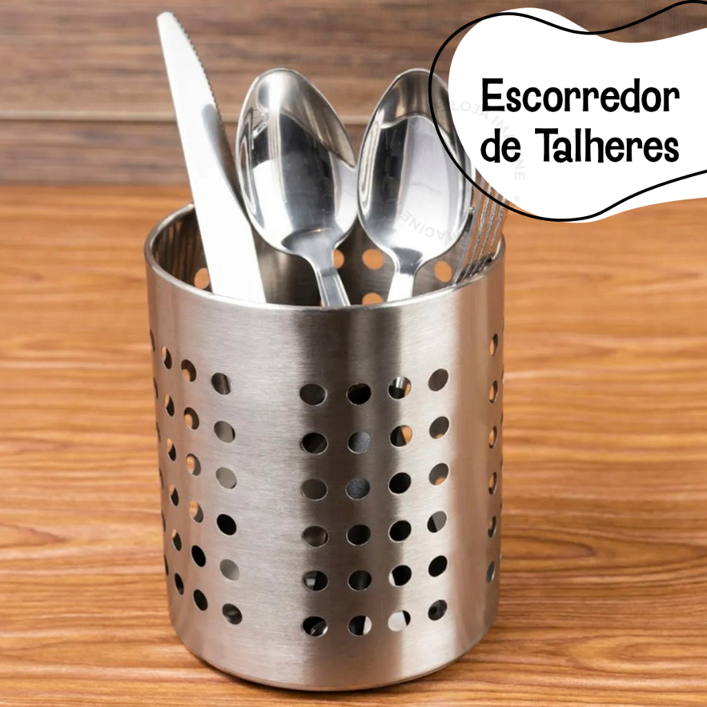Porta Talher Escorredor Vazado Cozinha Porta Objetos De Inox-CLINK
