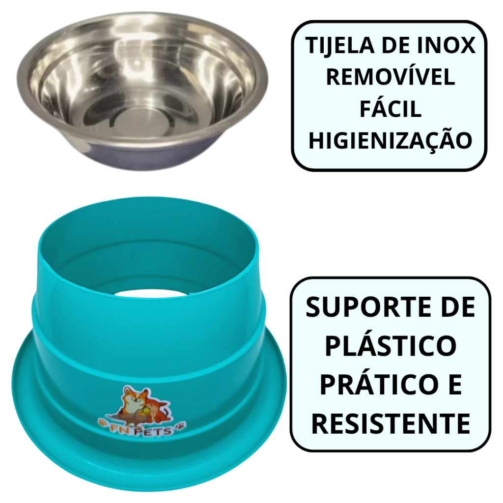 Kit até 8 Comedouro e Bebedouro inox pet Anti Formiga Refluxo para Cachorro e Gato FN Pets premium
