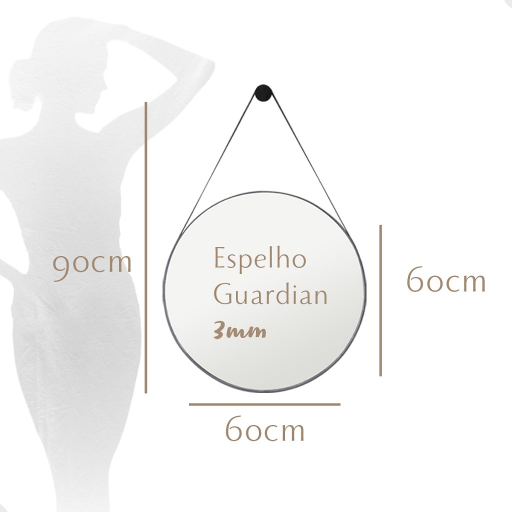 Espelho Barato Redondo Adnet Suspenso de Alça em Couro 60cm C/ Pino Suporte - Casa Domo