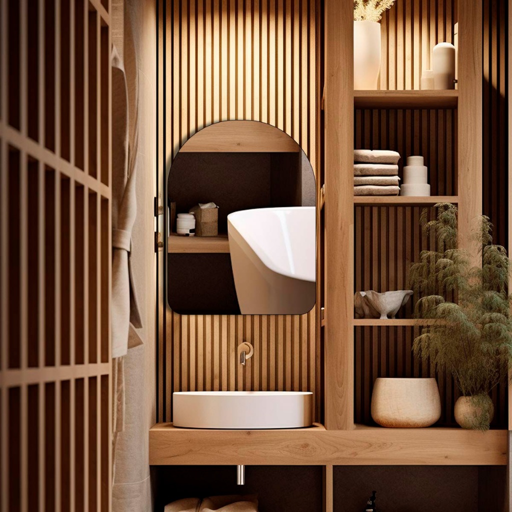 Espelho Decorativo Sala Hall Quarto Orgânico em Couro 44x64cm C/Suporte - Mod. Capela