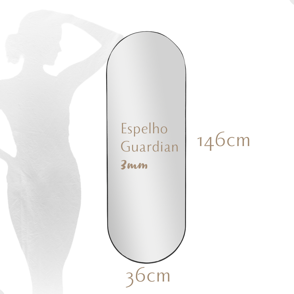 Espelho Corpo Inteiro Pílula Grande Geométrico 36x146 cm C/ Suporte De Chão Para Sala Quarto