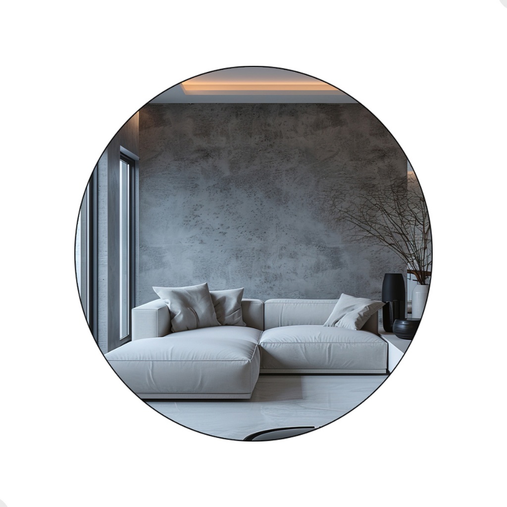 Espelho Redondo com Borda em Couro Ecológico e Costura Dupla para Banheiro Sala 40cm 50cm 60cm