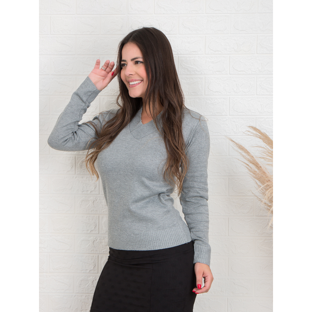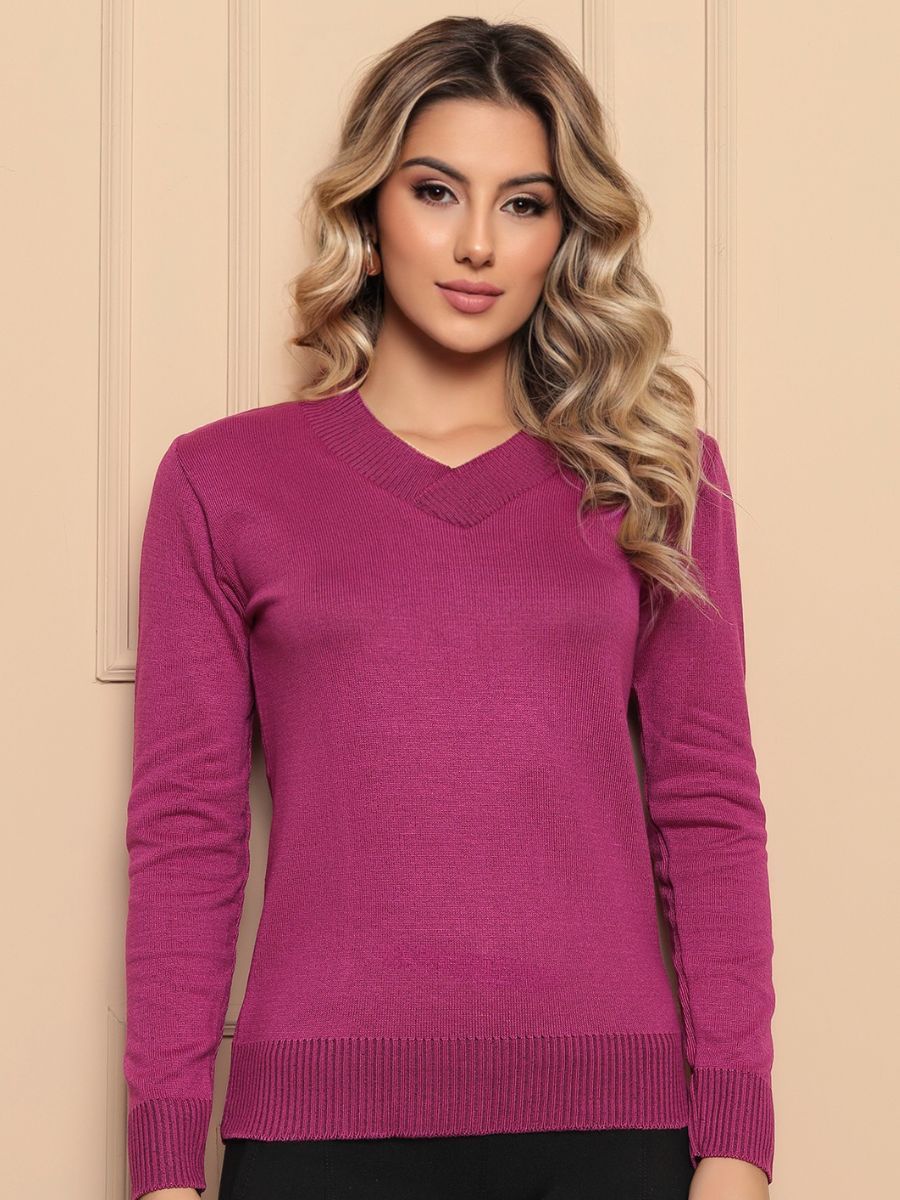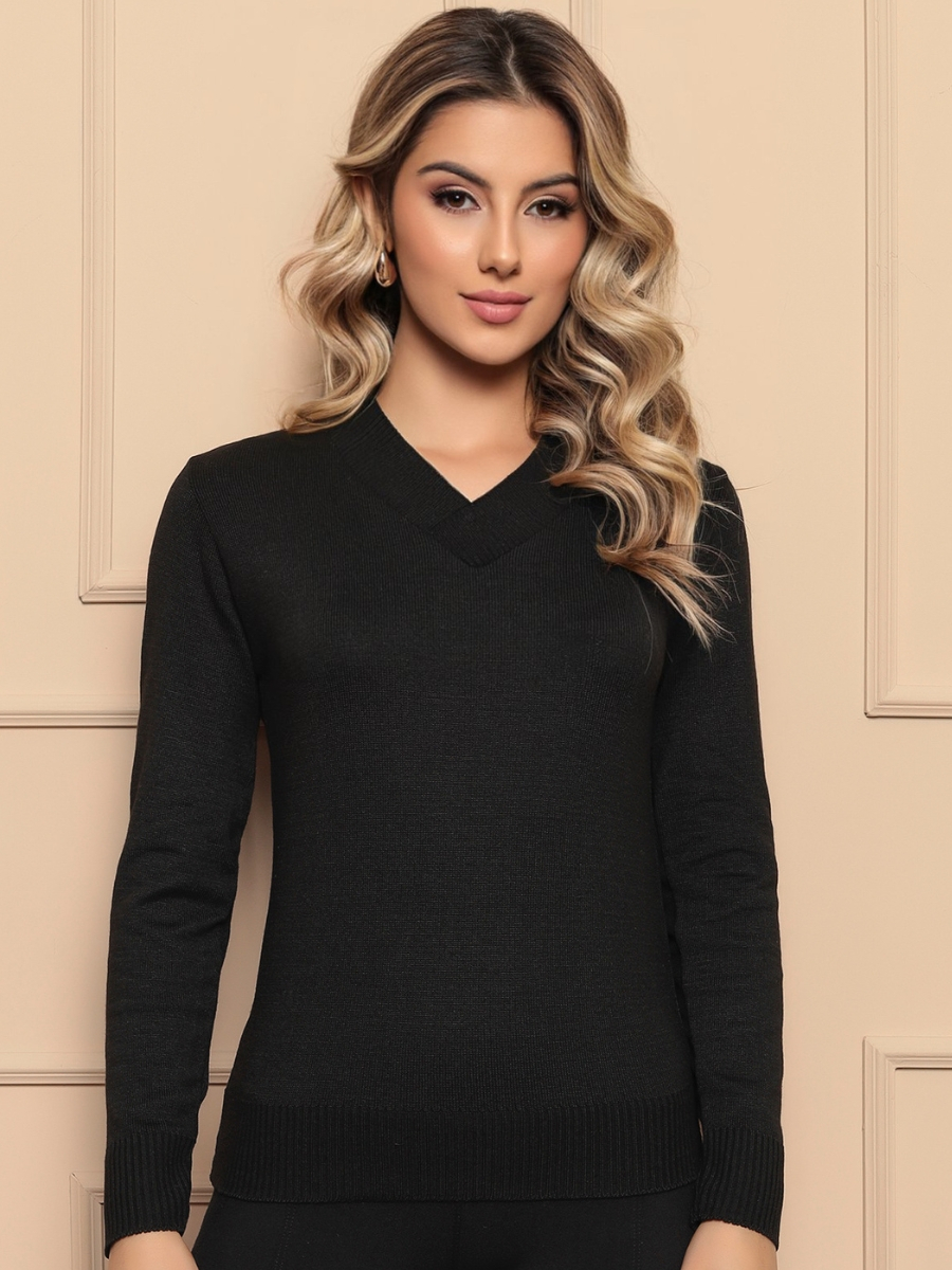 Blusa Feminina Suéter Moletom Básica De Modal Gola V