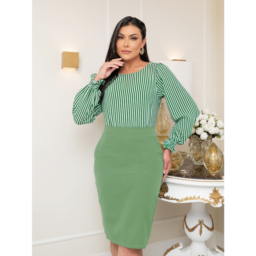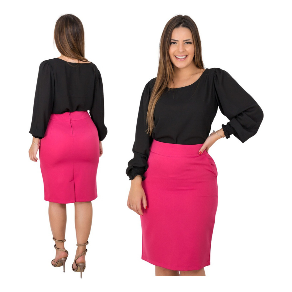 Saia Evangélica Midi Alfaiataria Casual Social Tecido Premium Com Bolso Congresso Reta Justa Moderna