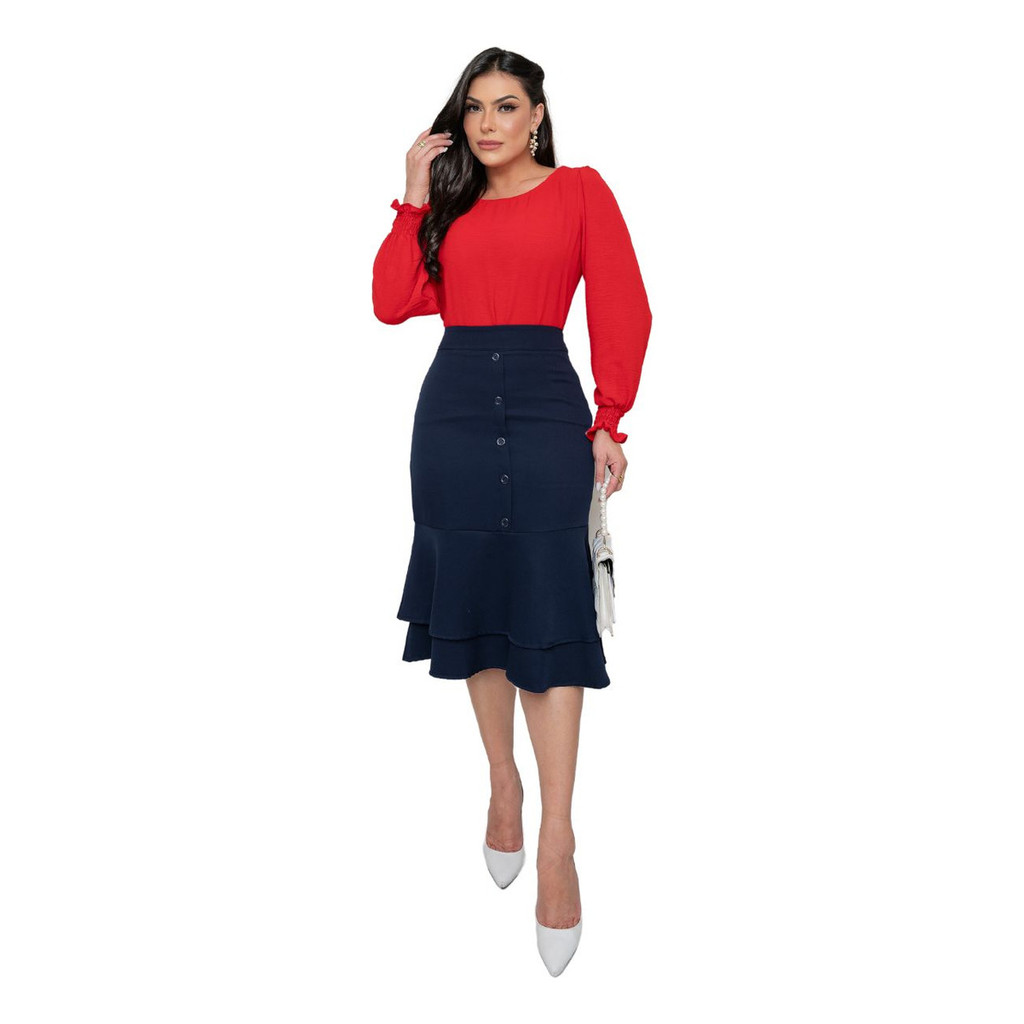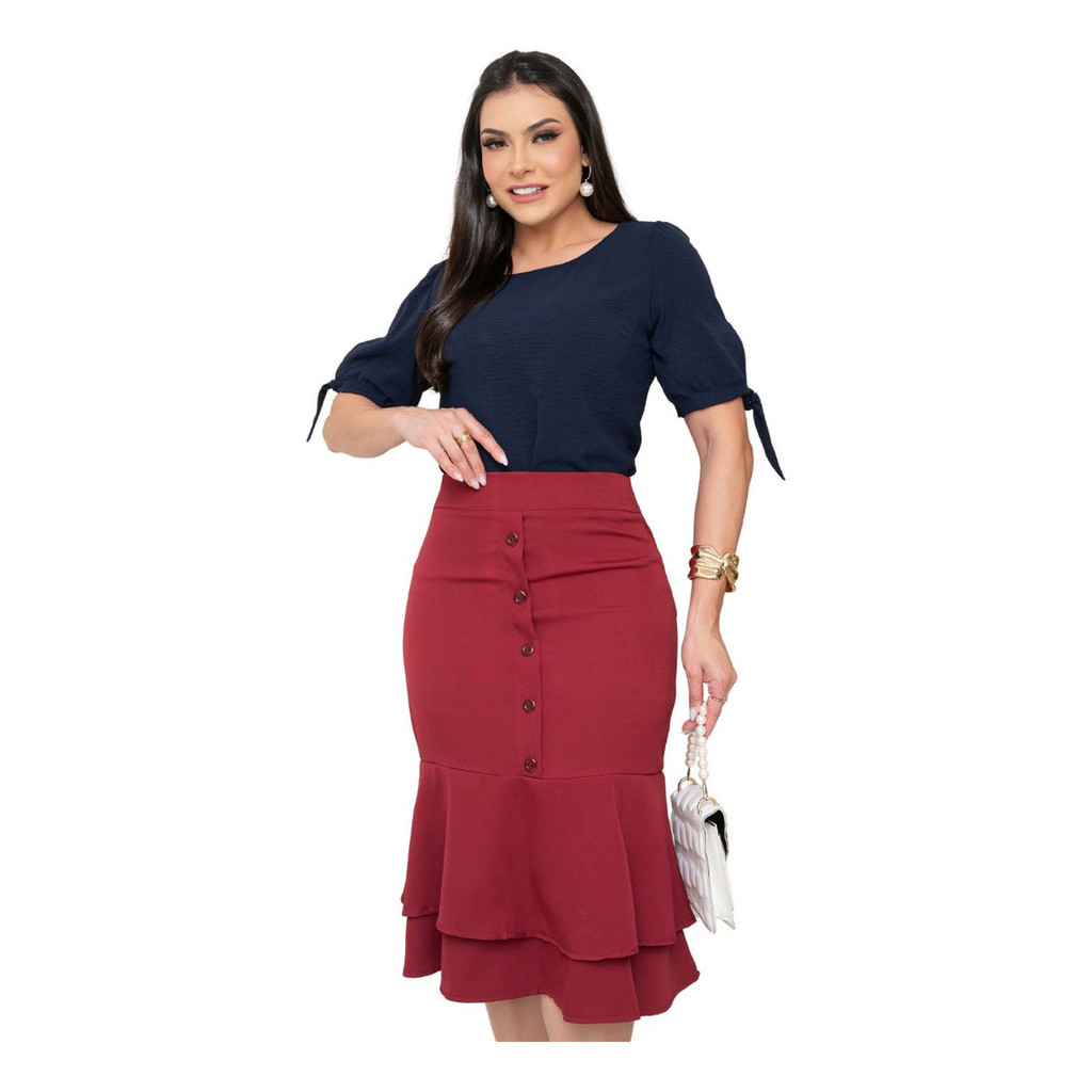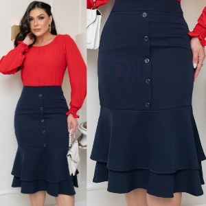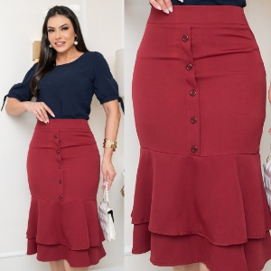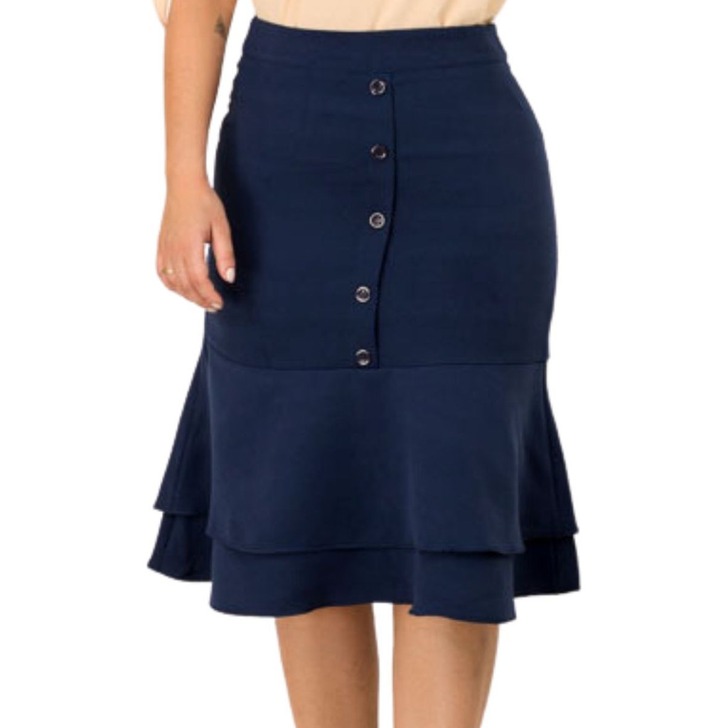 Saia Com Babados E Botões Na Frente De Alfaiataria Feminina