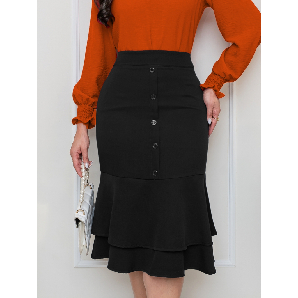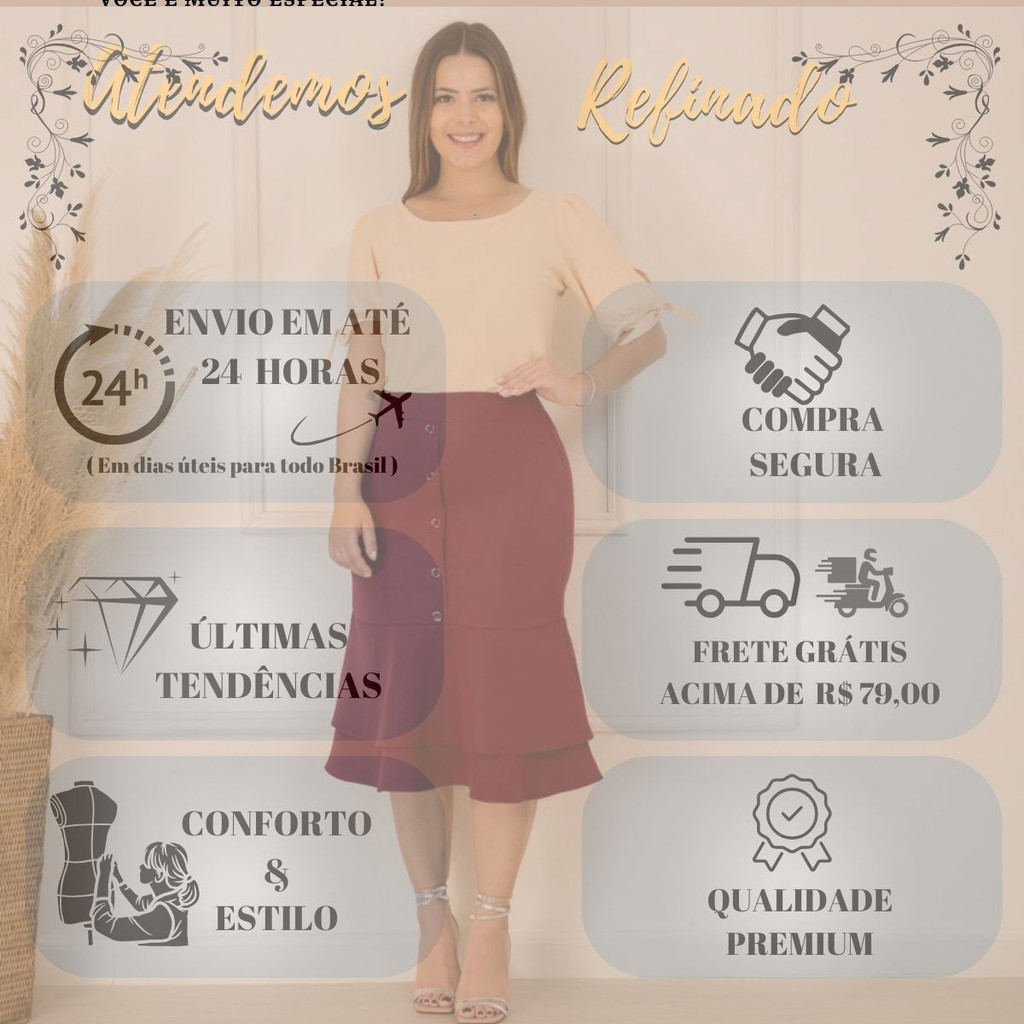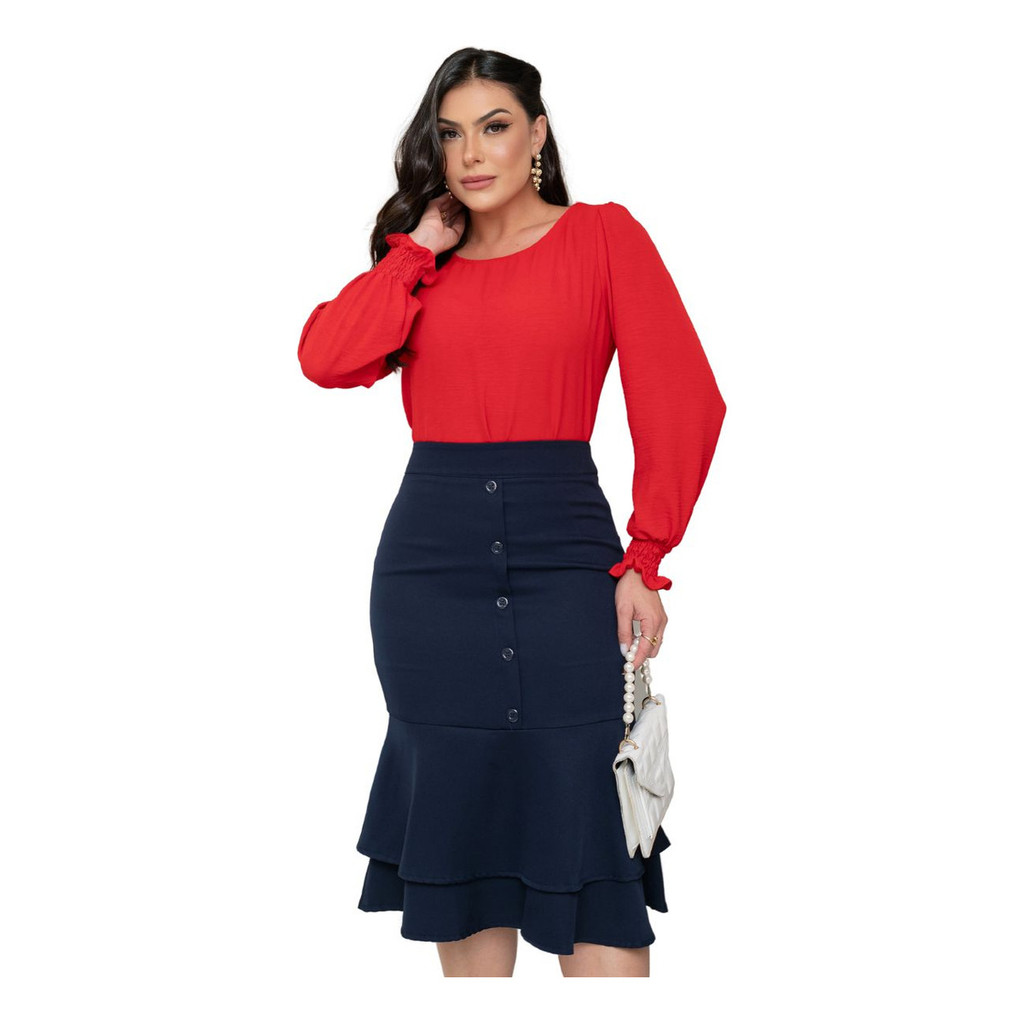 Saia Com Babados E Botões Na Frente De Alfaiataria Feminina