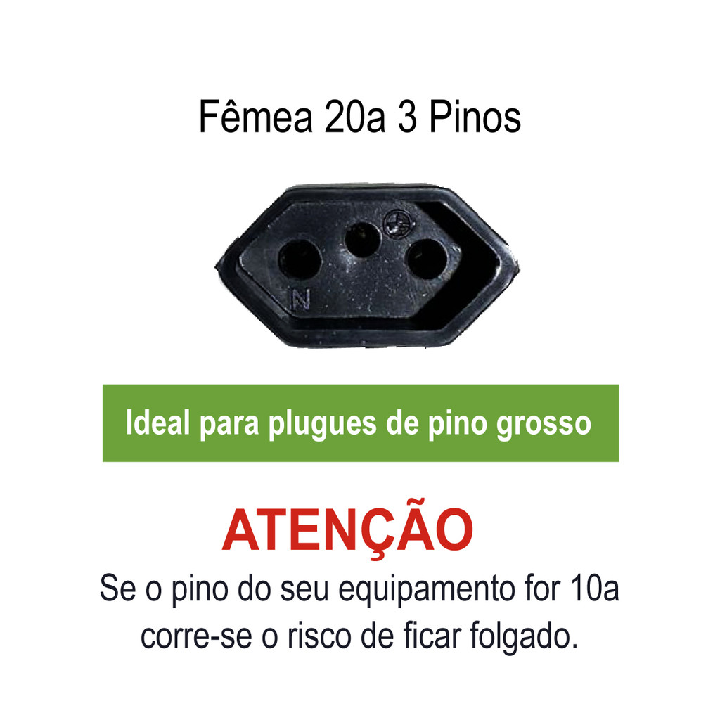 Adaptador de Tomada 20A 3P para 10A 3P Uso Residencial