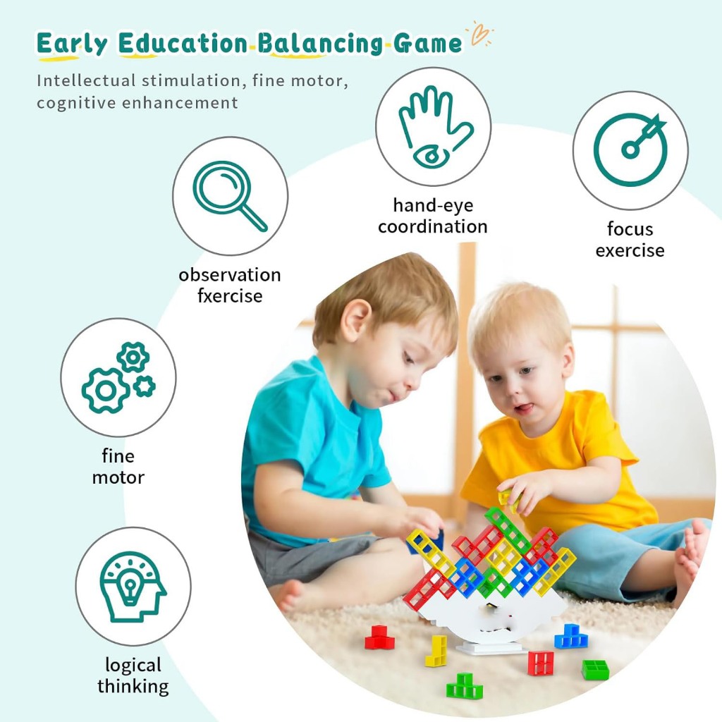 16/32/48PCS + Base Tetra Tower Game Tetris Balance Toy Stacking Block Montagem De Blocos De Brinquedos Construção Educativos Para Crianças
