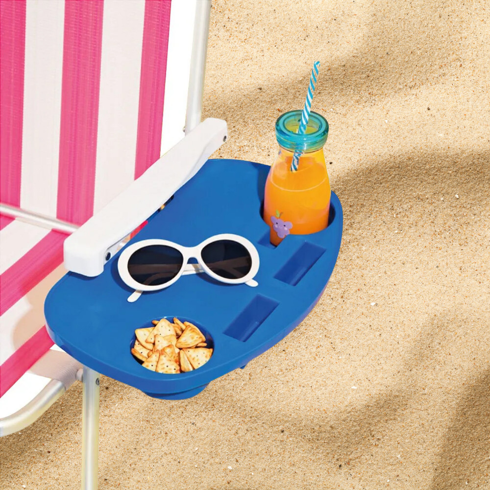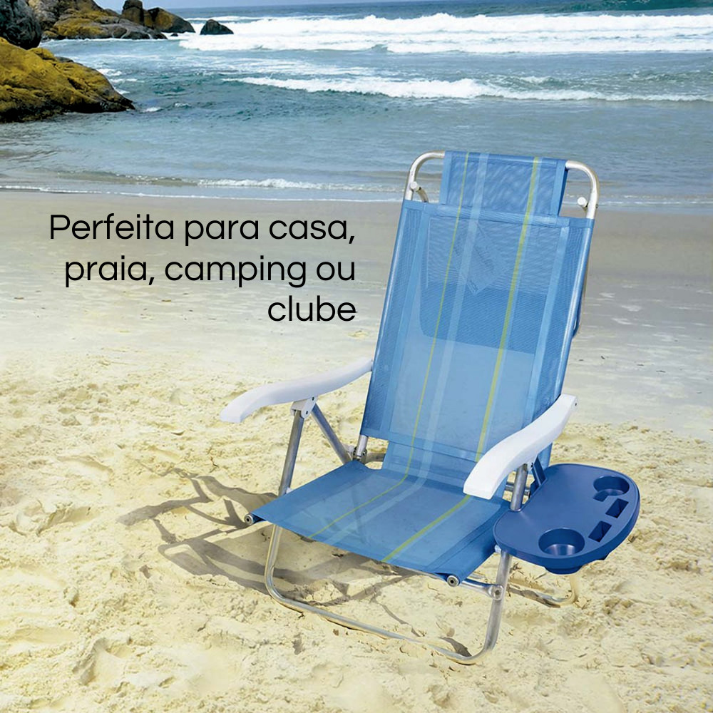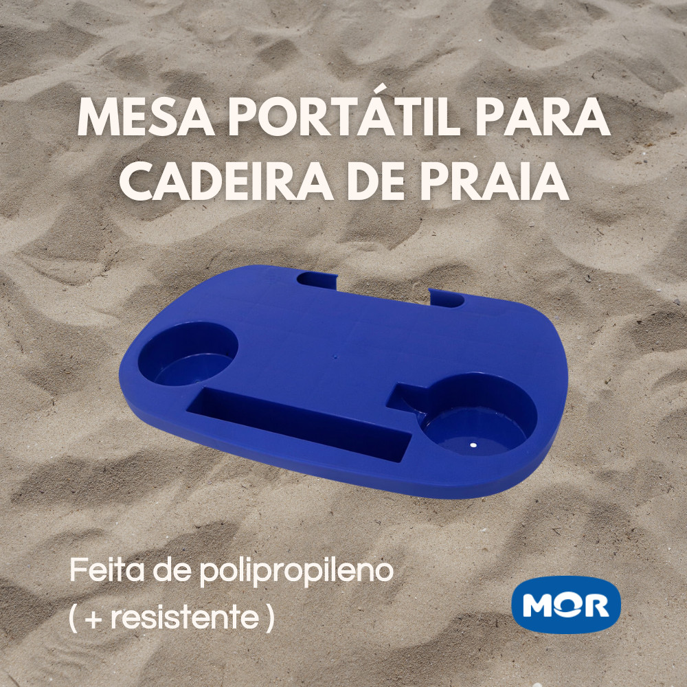Kit 3 Mesa Portátil para Cadeira de Praia Suporte Azul Mor Polipropileno Porta Copo Celular Verão Praia Piscina Camping