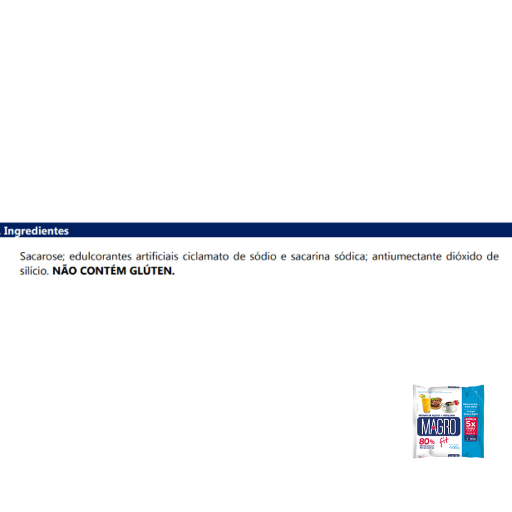 Açúcar Light Magro Fit 400g - Forno e Fogão