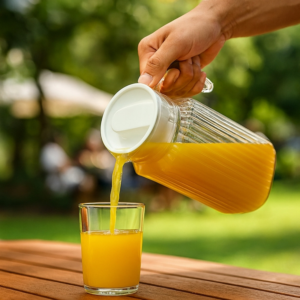 Jarra Canelada de Vidro 1,8L com Tampa Plástica | Ideal para Sucos, Água e Bebidas Geladas
