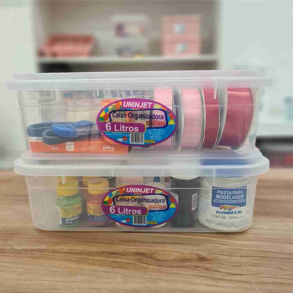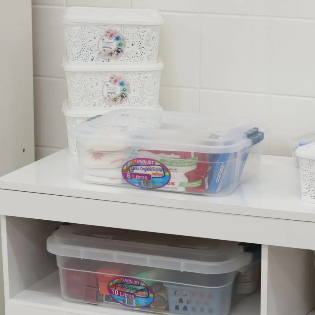 Kit com 2, 3, 4, 5 e 6 Caixa Organizadora Transparente 6 Litros Com tampa e Travas