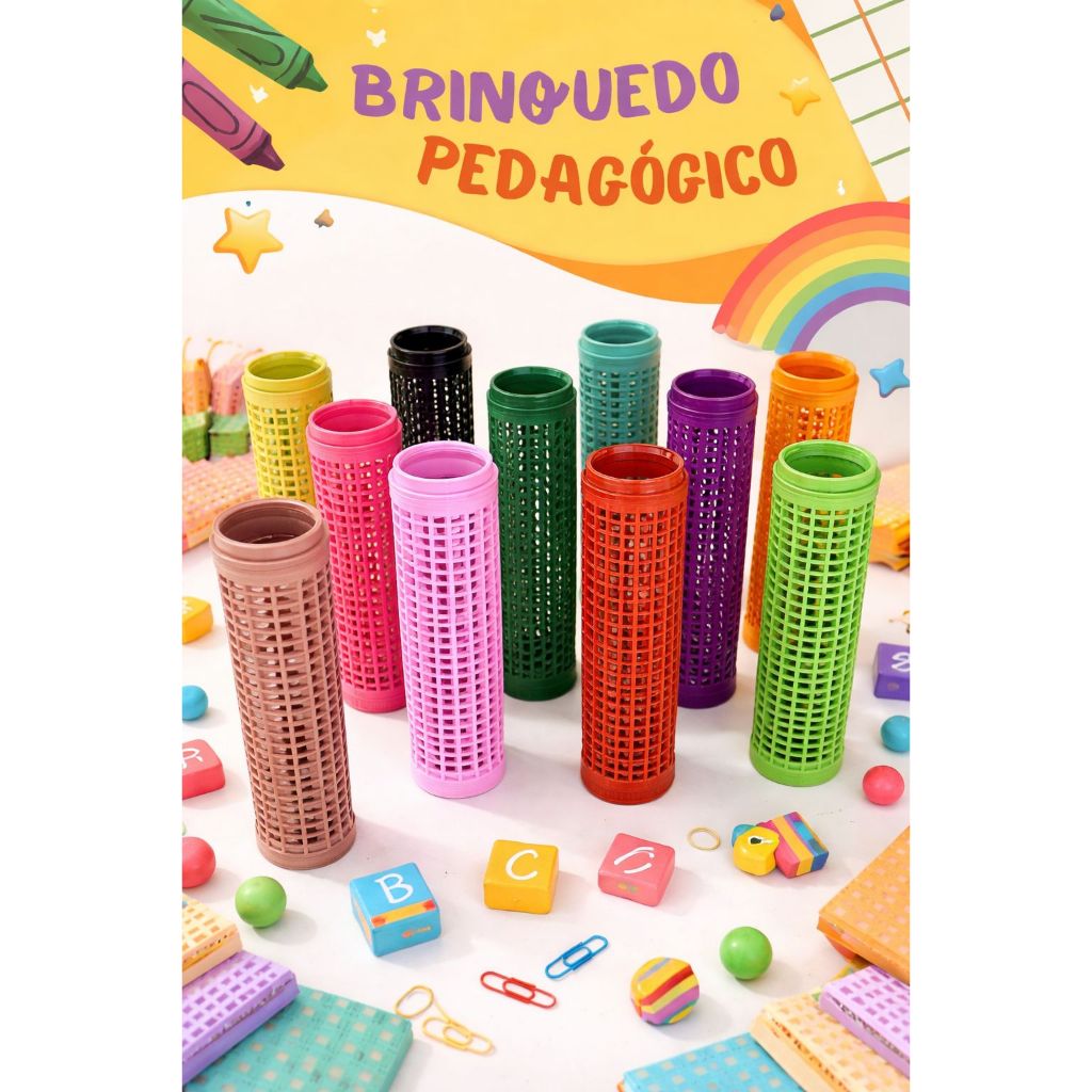 KIT 8 Cilindros Plasticos Vazados Pedagógicos - Cores Diversas - Brinquedo Infantil Creche