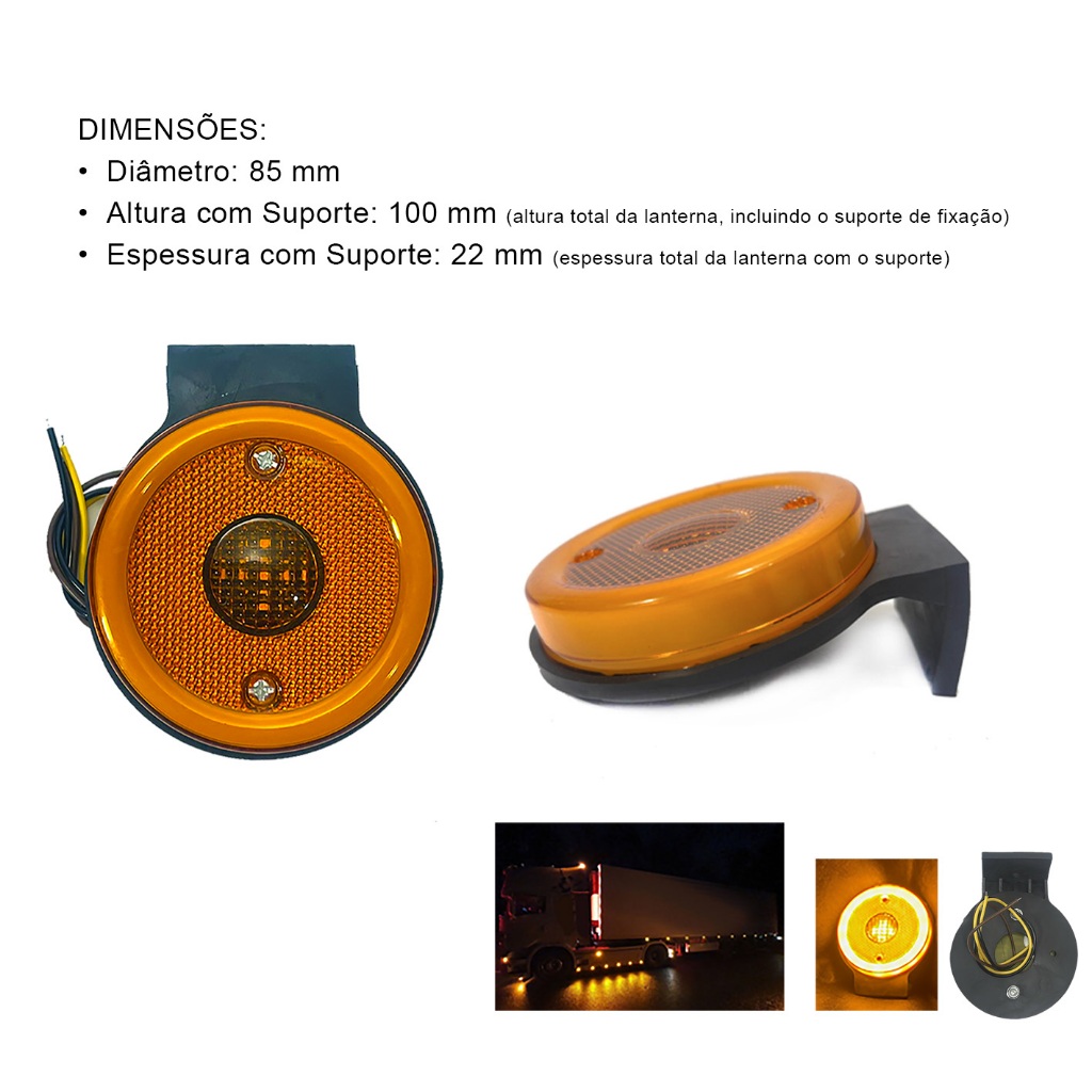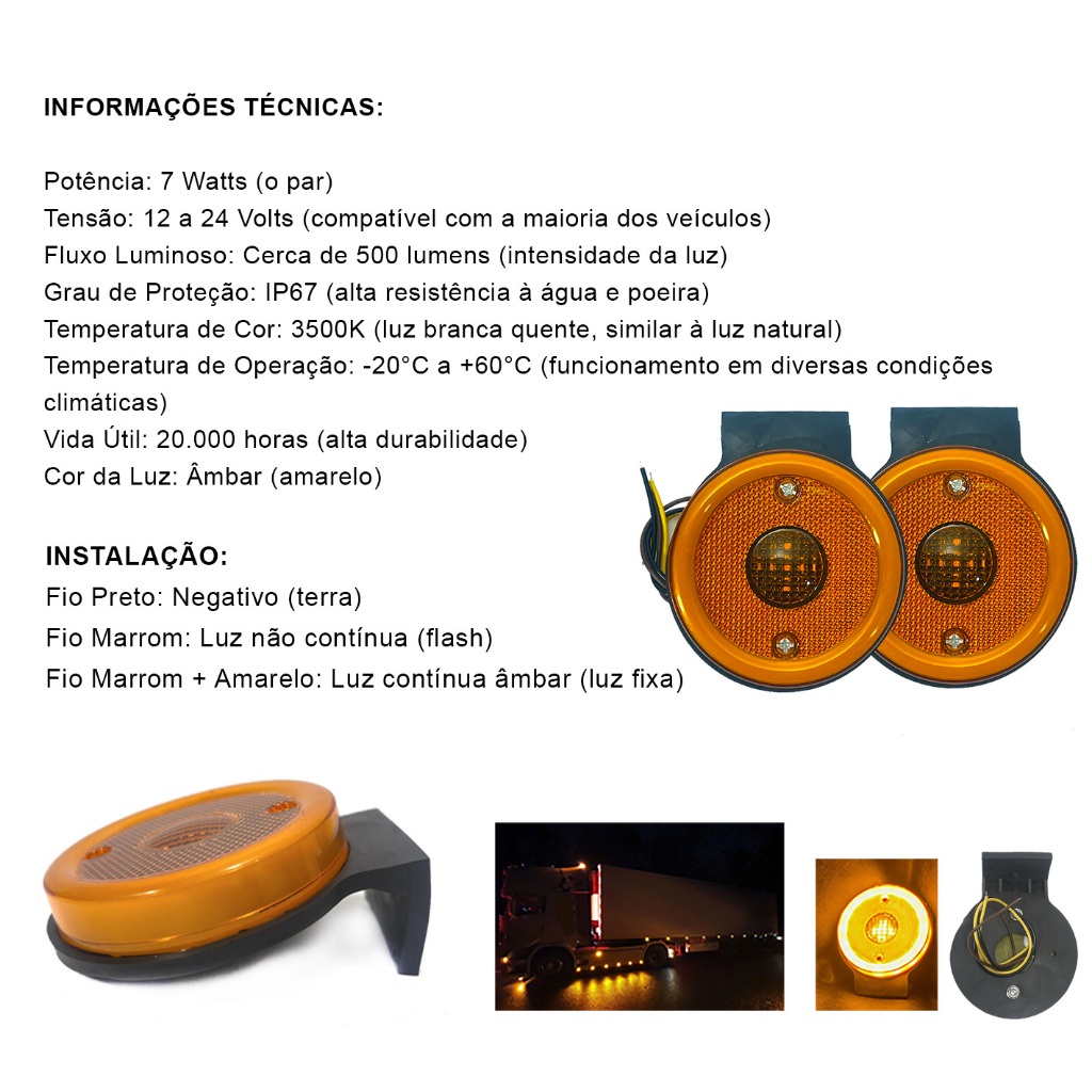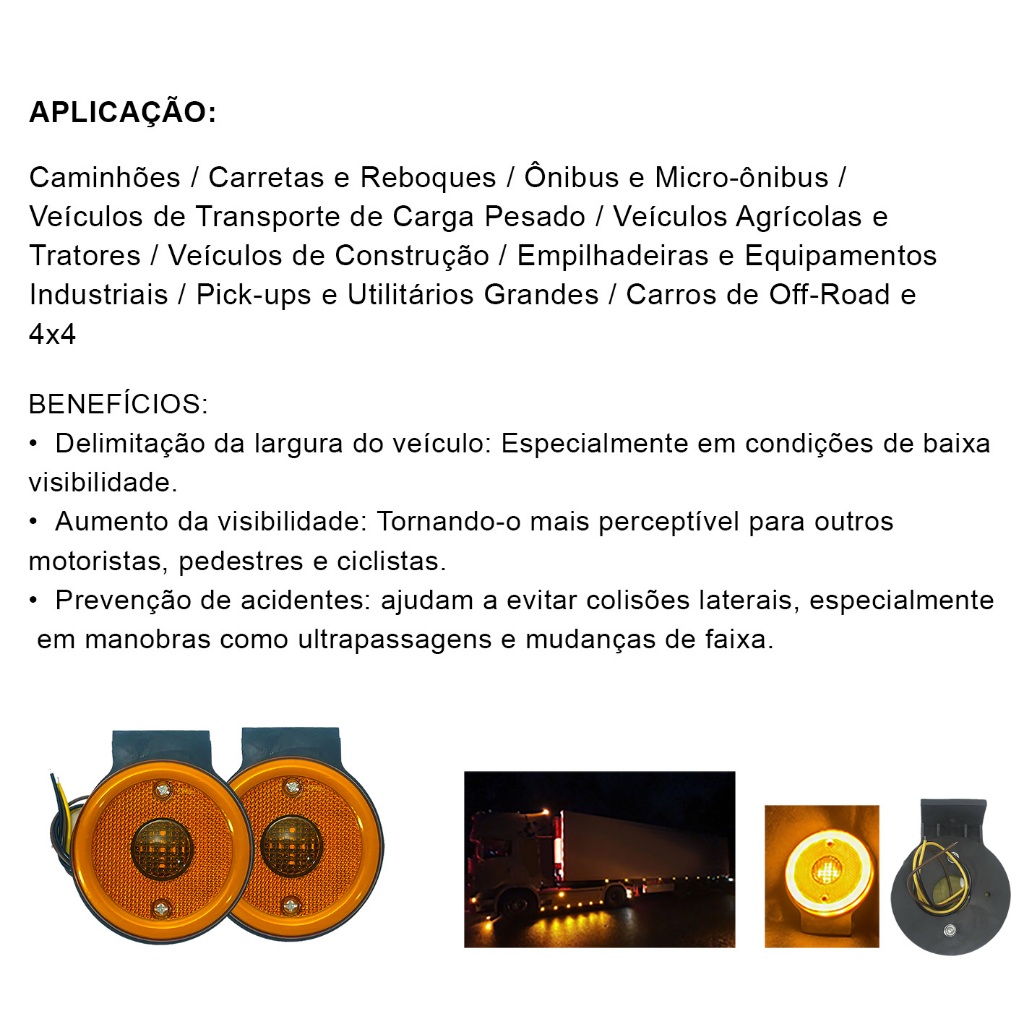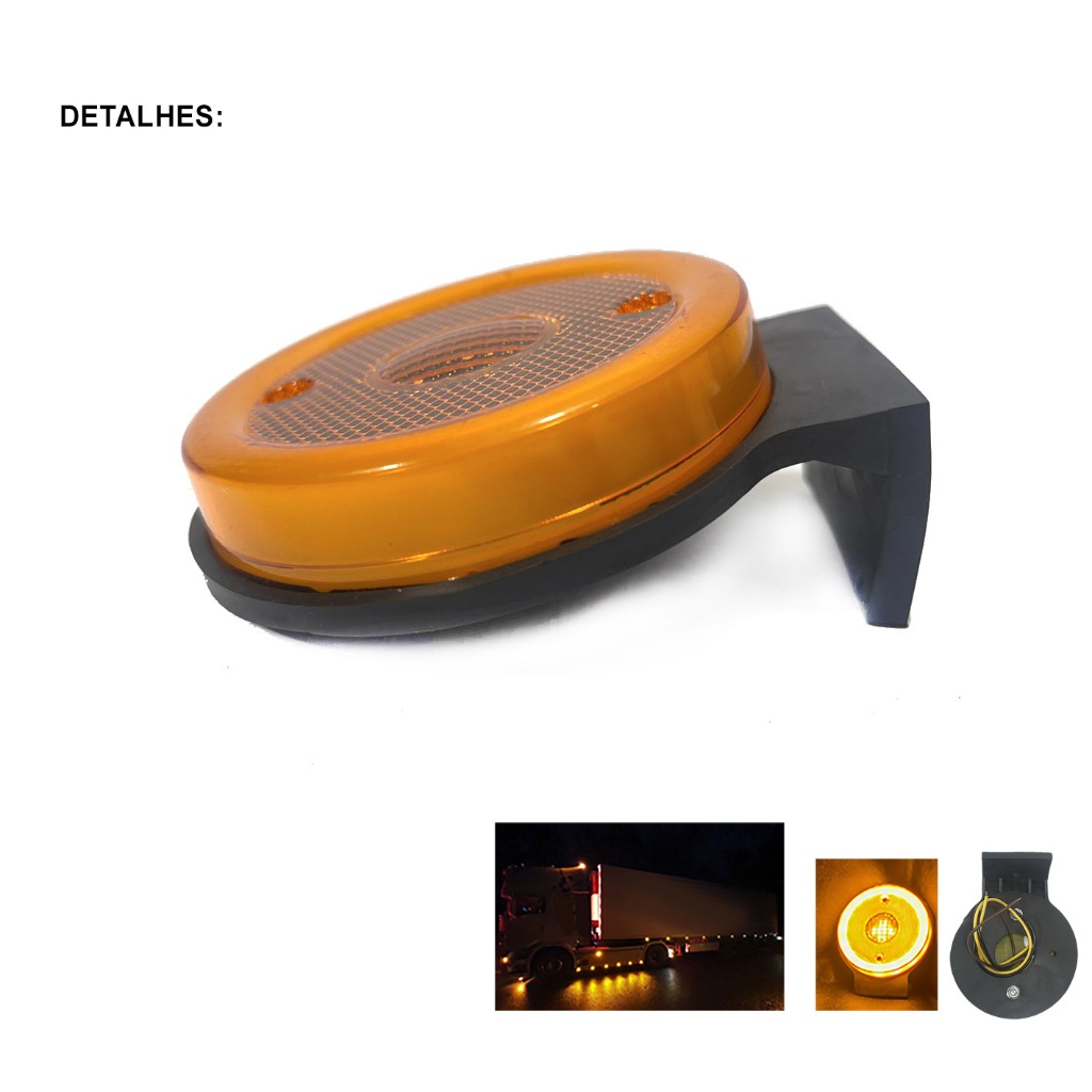 LED 8 Lanternas 2 funções Corujinha Led Ambar Redonda 12/24V para Caminhão Scania e Iveco (pisca + continua)
