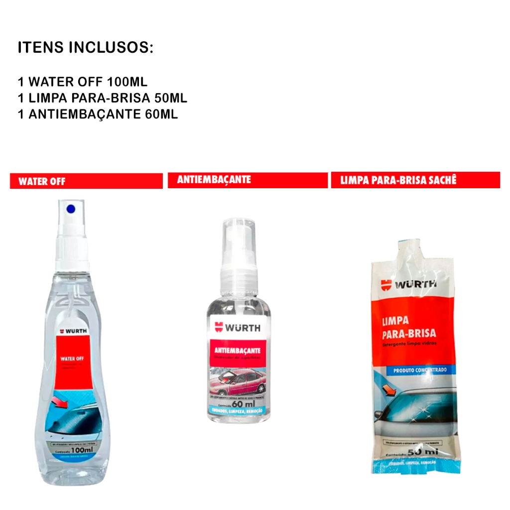 Kit LIMPA VIDRO AUTOMOTIVO Cristalizador Water Off Repele água + Anti Embaçante + Limpa Parabrisa + pano microfibra