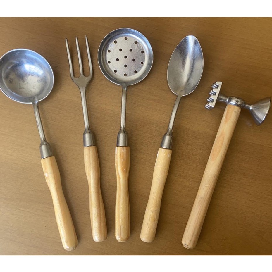 5 Talher Inoxidável Garfo Churras Escumadeira Concha Colher