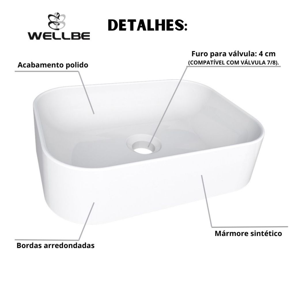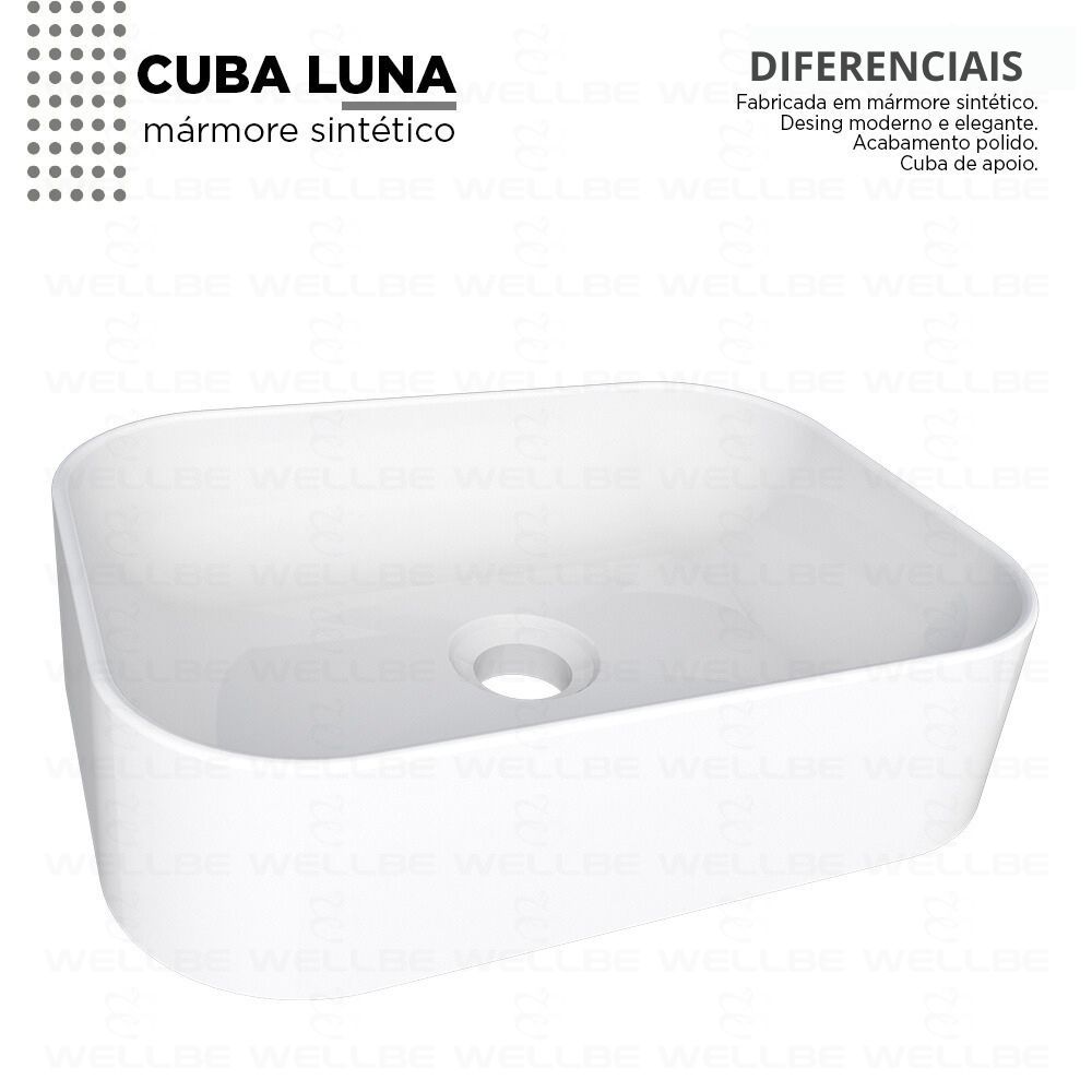 Cuba Pia De Apoio Para Banheiro Luna em Mármore Sintético Acabamento Brilhante 28x38 - Branco