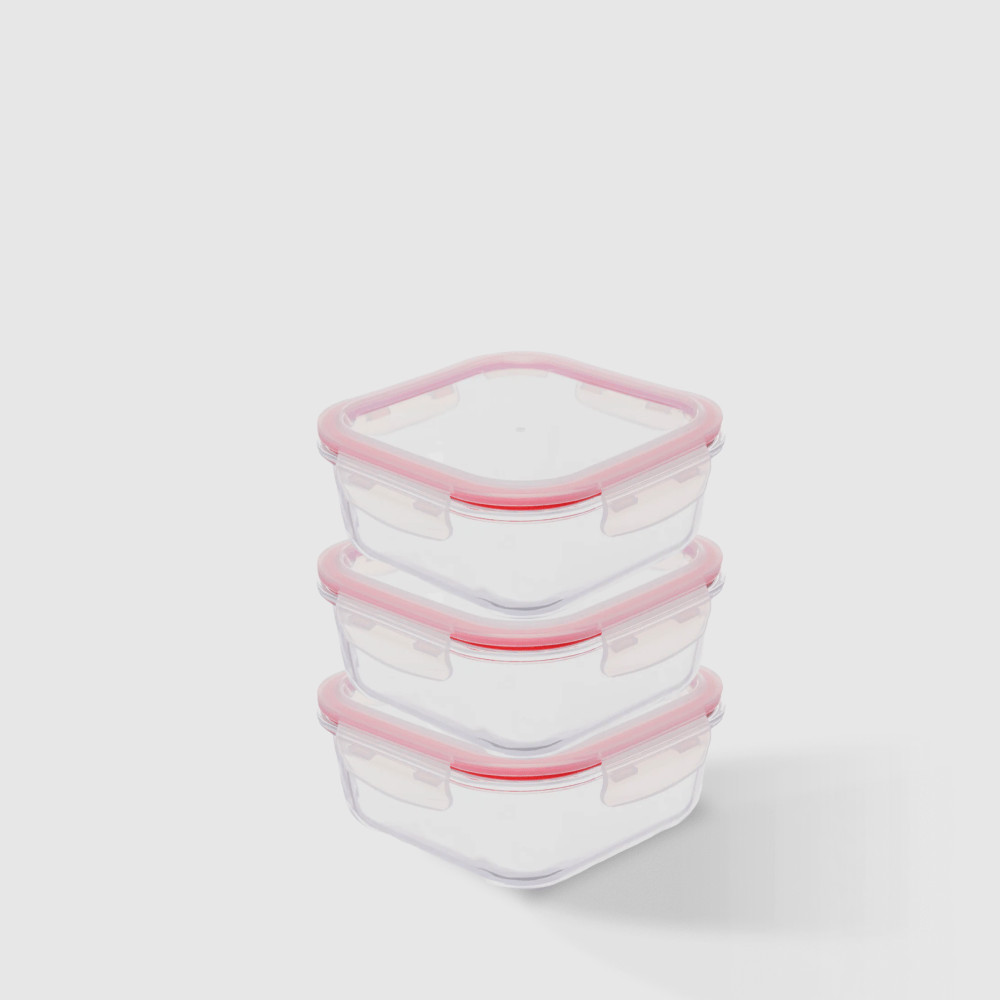 Kit com 3 Potes de Vidro Herméticos Quadrados 1,1L Invicta