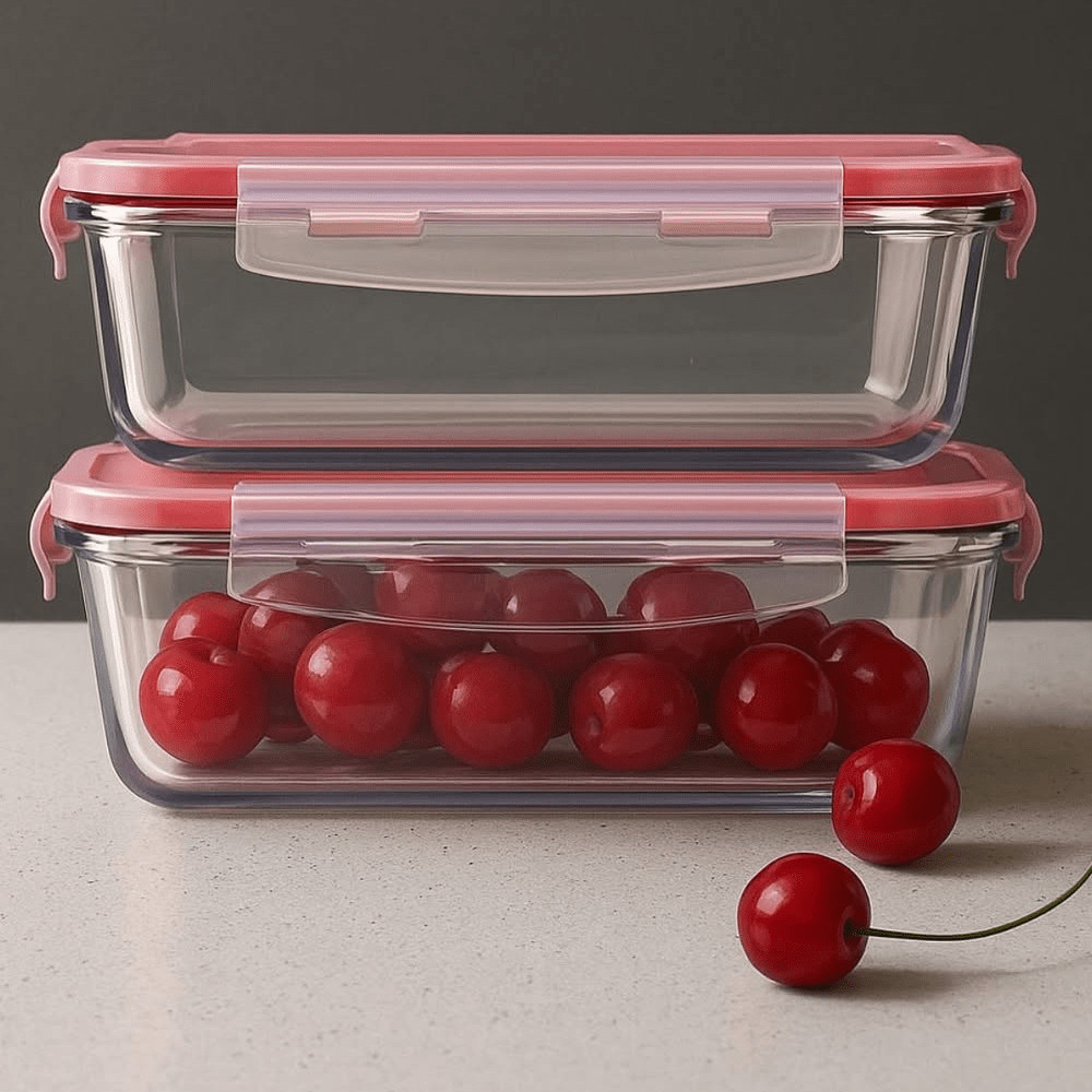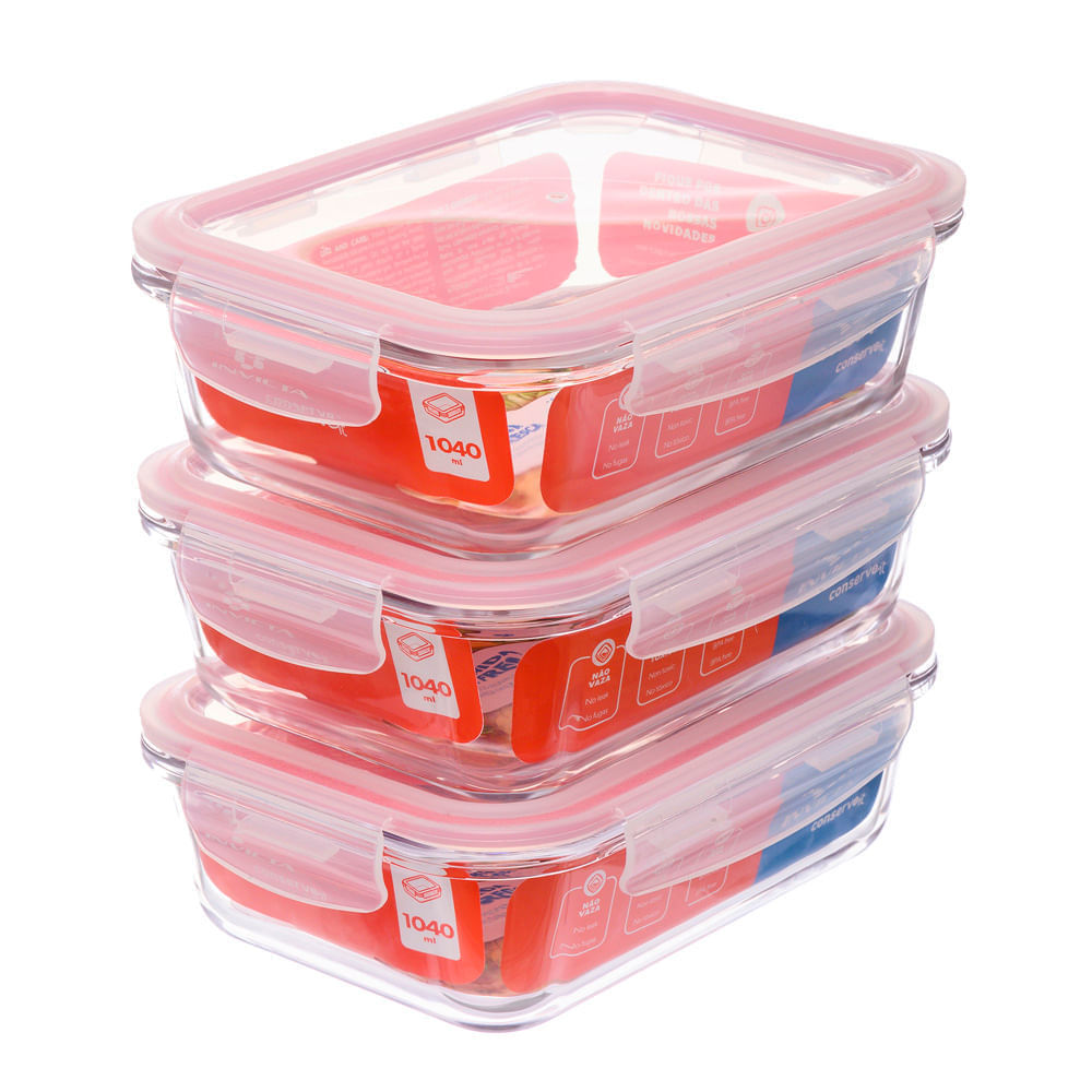 Kit com 3 Potes de Vidro Herméticos Retangulares 1L Invicta