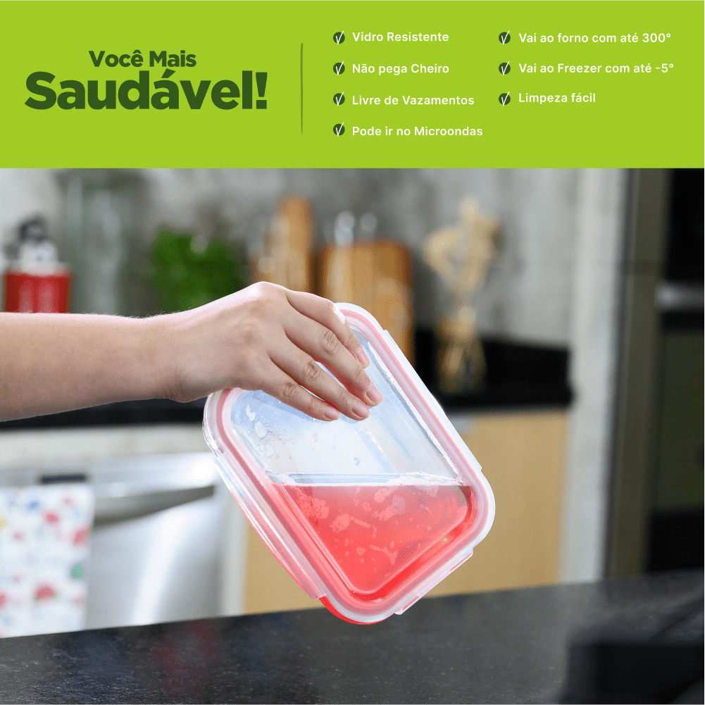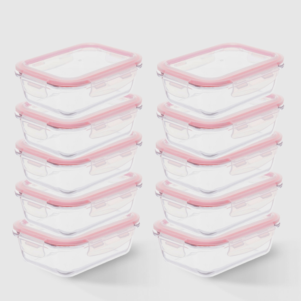 Kit com 10 Potes de Vidro Herméticos Retangulares 640ml Marmita Ideal Invicta