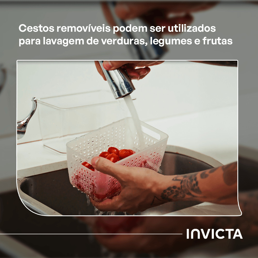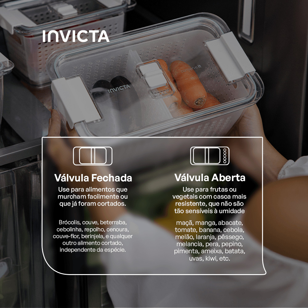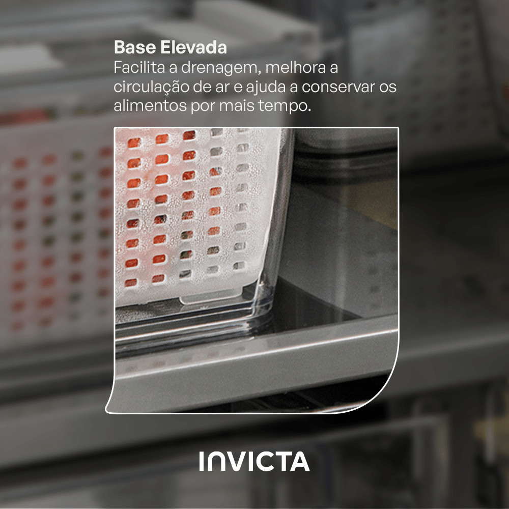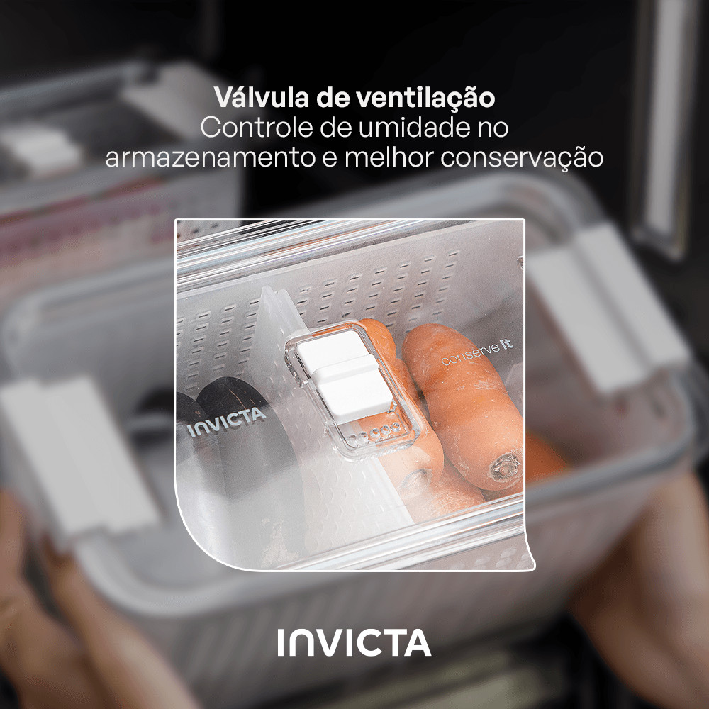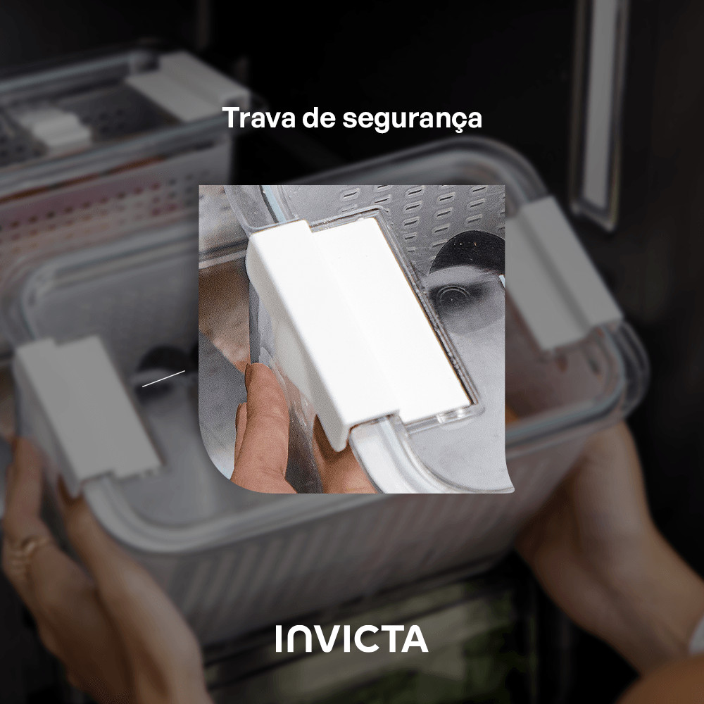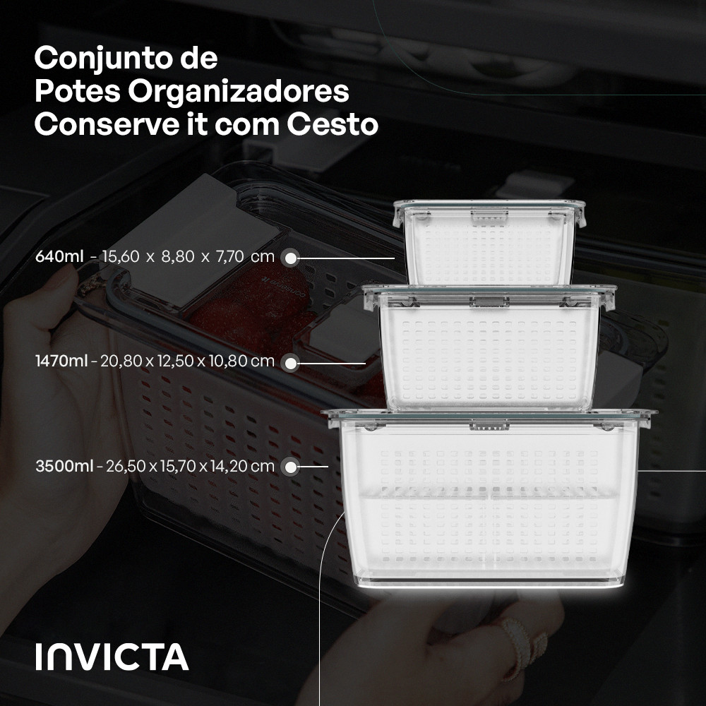 Kit com 3 Potes Organizadores de Geladeira Conserve It com Cesto Branco Invicta