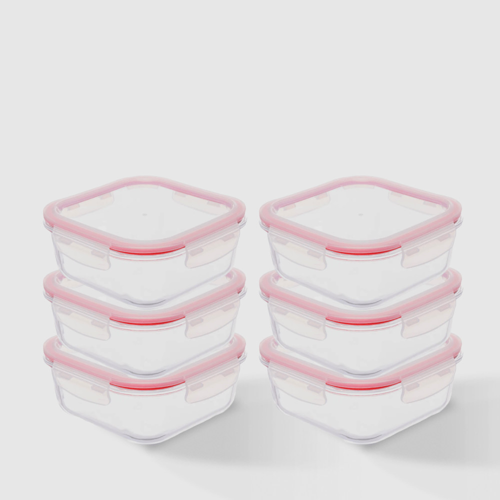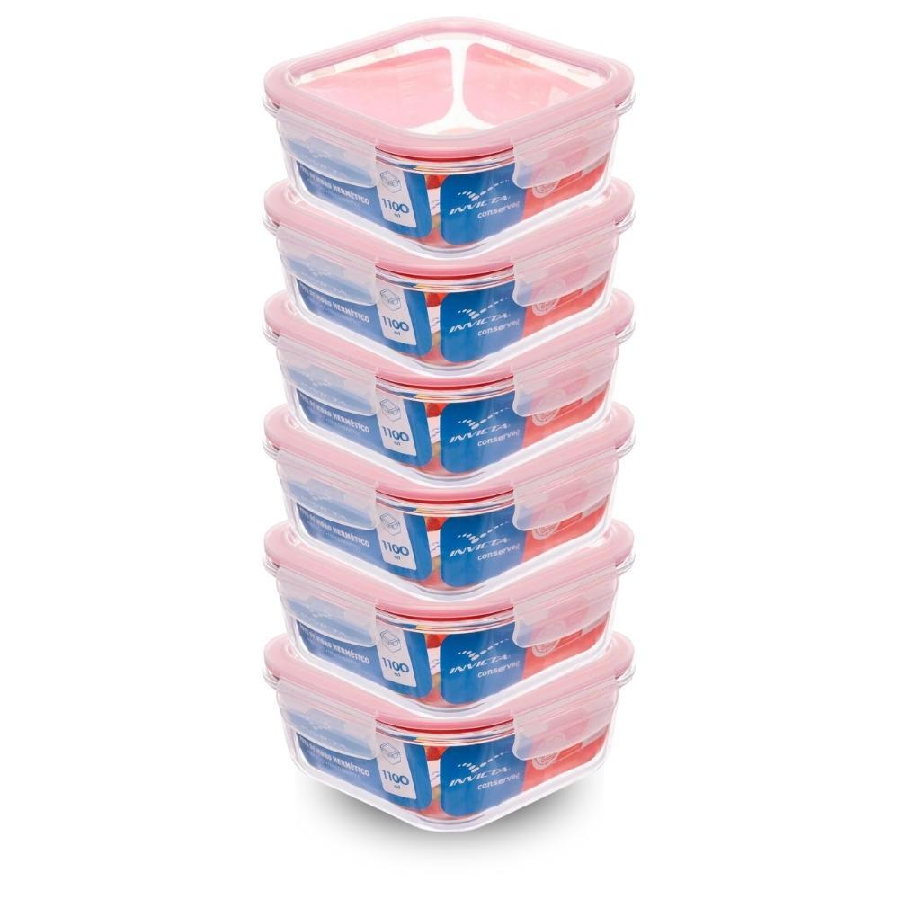 Kit com 6 Potes de Vidro Herméticos Quadrados 1,1L Invicta