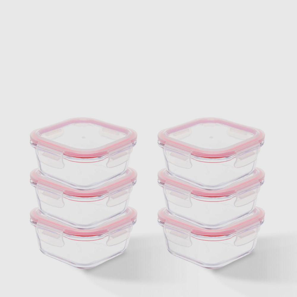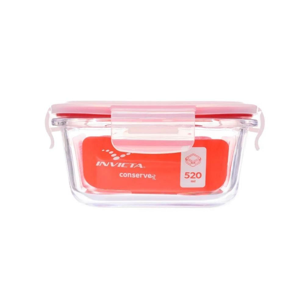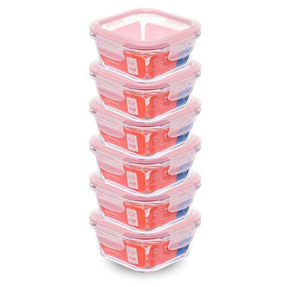 Kit com 6 Potes de Vidro Herméticos Quadrados 520ml Invicta