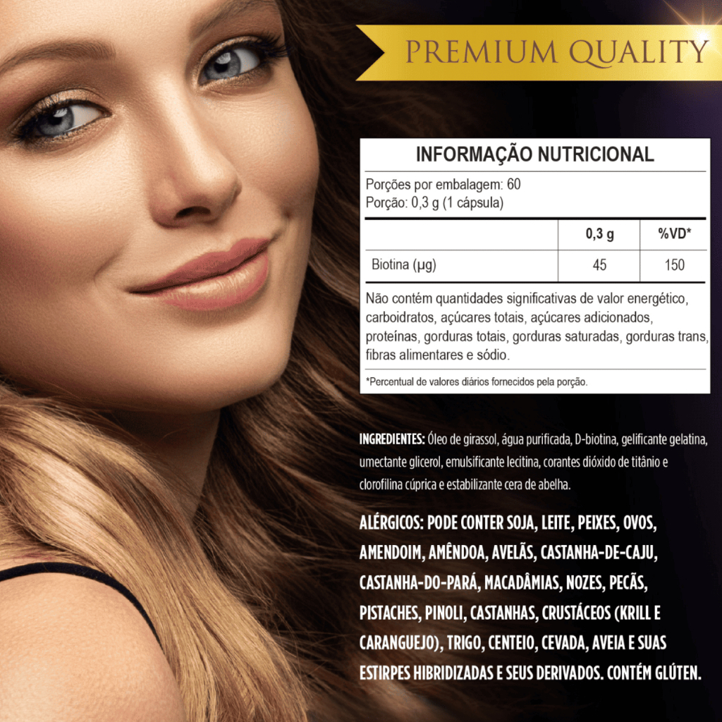 Kit 3x - Biotina Original 100% Pura - Premium Verdelita – Cabelo, Pele e Unhas | 60 Cápsulas Softgel