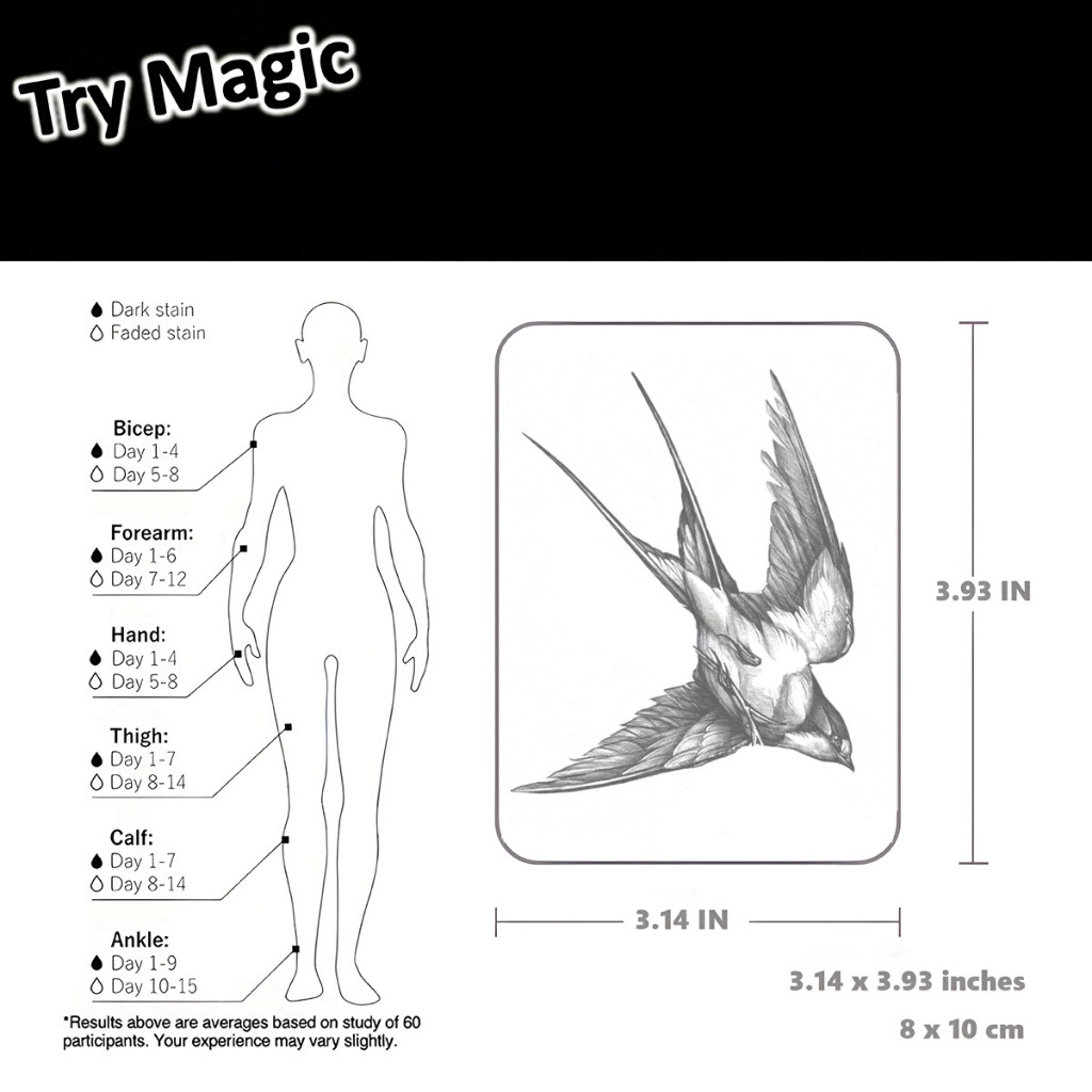 Tatuagem de Andorinha Simulada, Adesivo de Tatuagem Falsa à Prova d'Água e Resistente à Fricção, Pode Durar 15 dias, Ade
