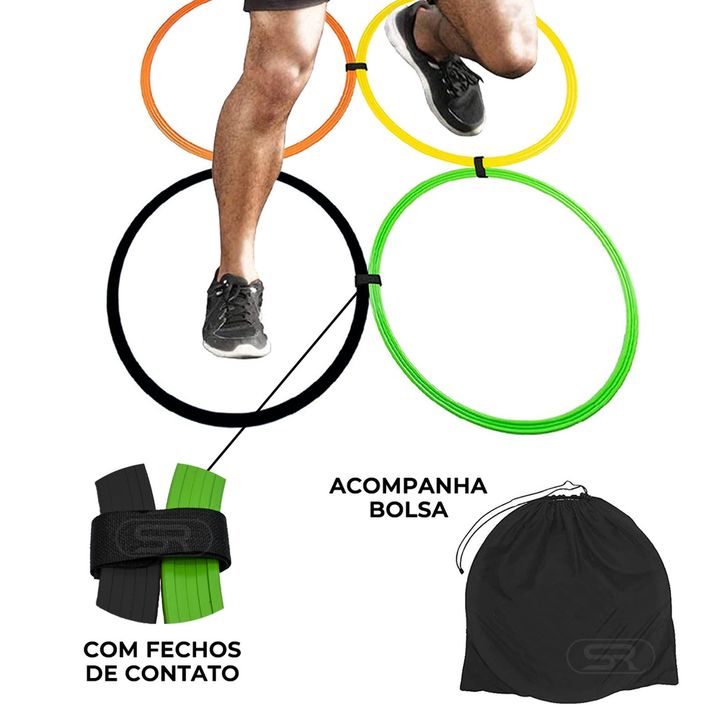 Kit 10 Cones C/ 5 Barreiras + 10 Pratos Funcionais + 12 Argolas Agilidade Com Bolsa + Escada Funcional Ajustável