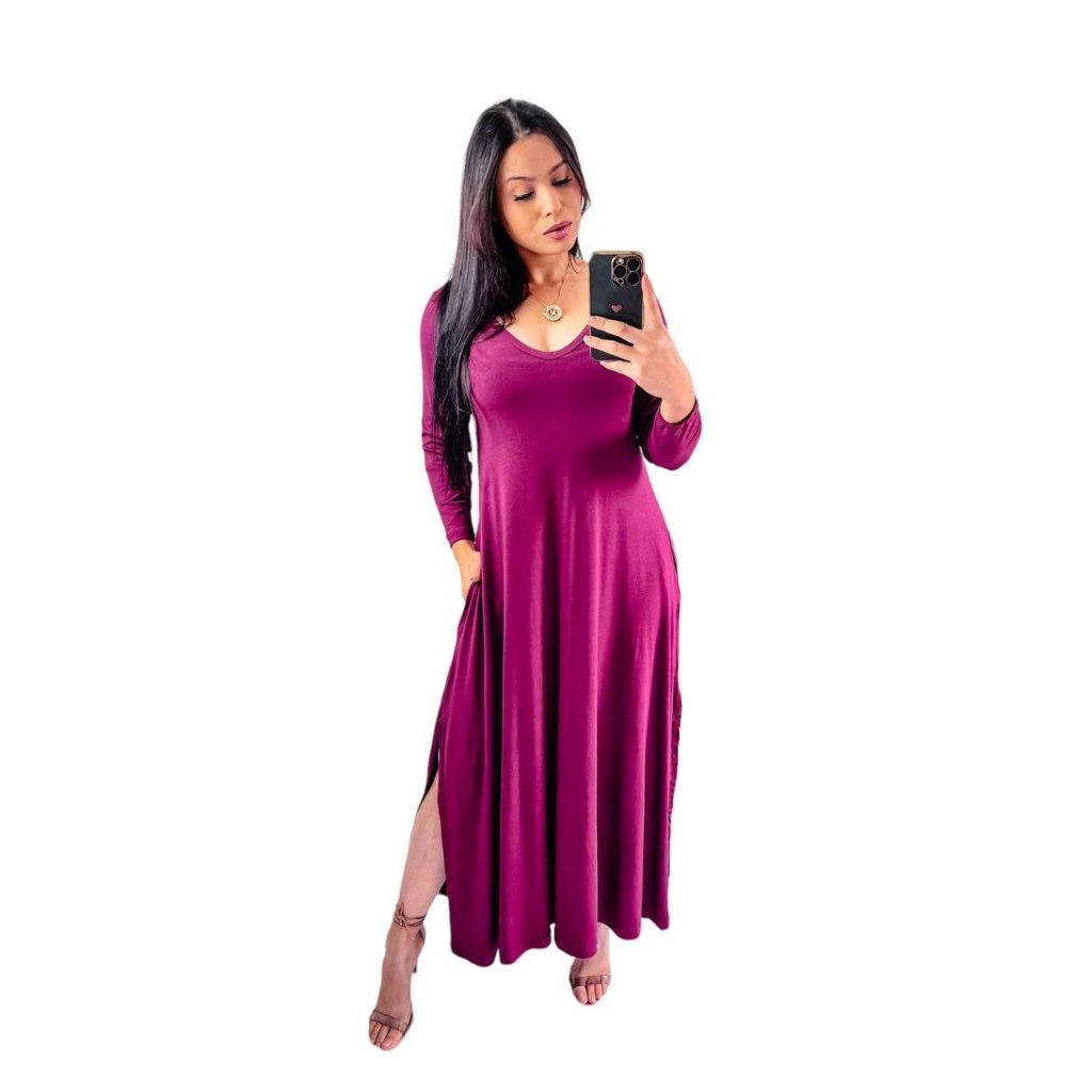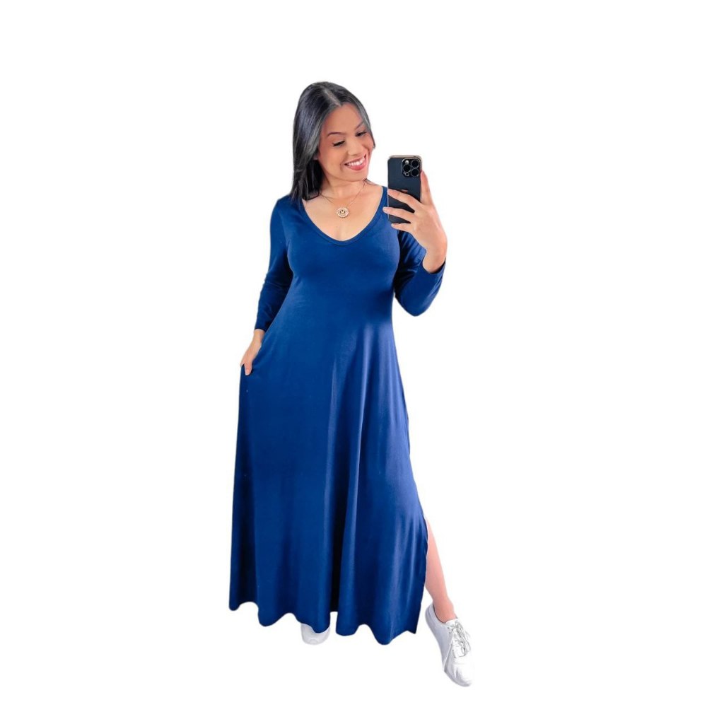 Vestido Gola V de manga Comprida