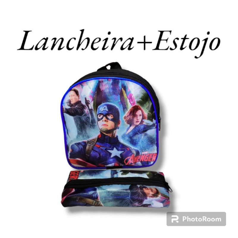 Kit Mochila Infantil Escolar com Rodinhas de Silicone do Menino Vingadores + Lancheira + Estojo