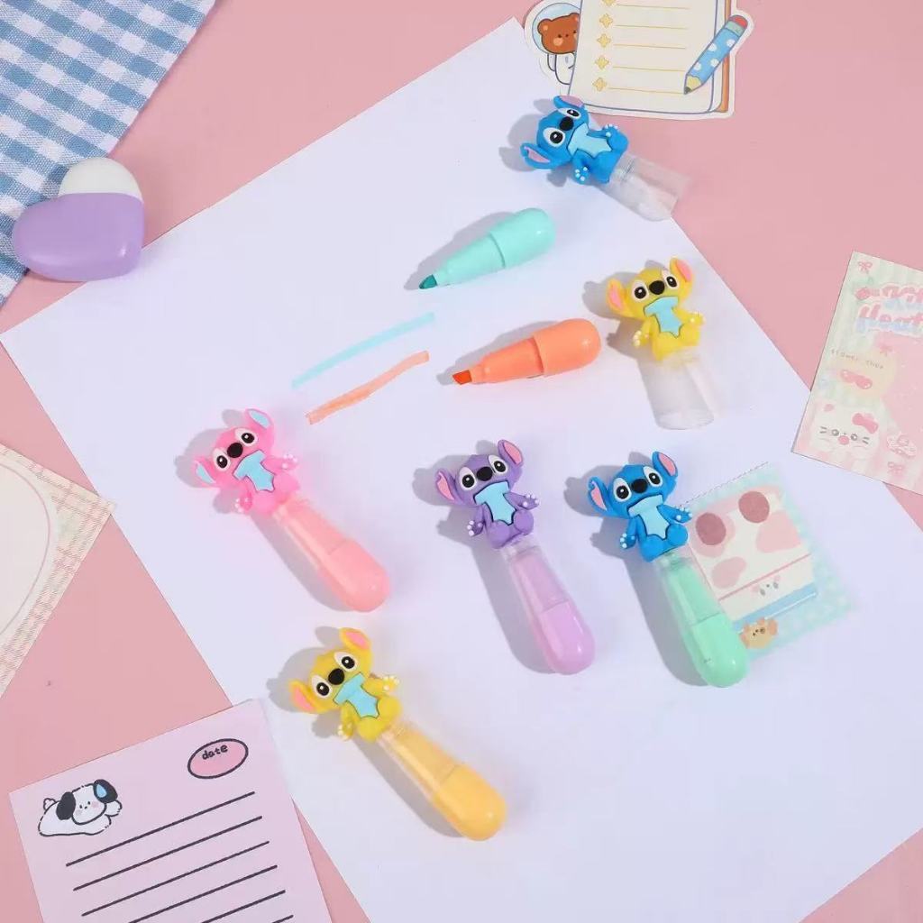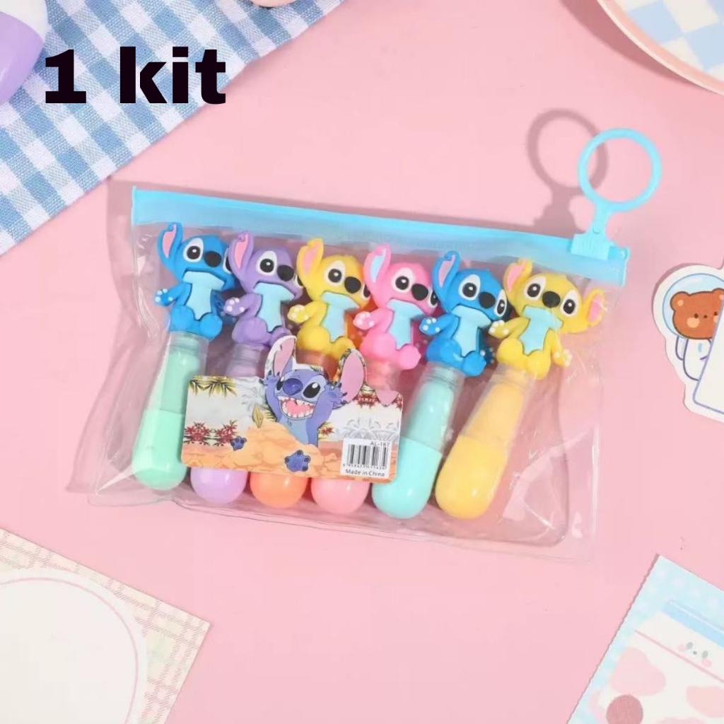 Kit 6 Marca Texto Stitch Colorido Fofo Mini Escolar Papelaria Escritório Estudos