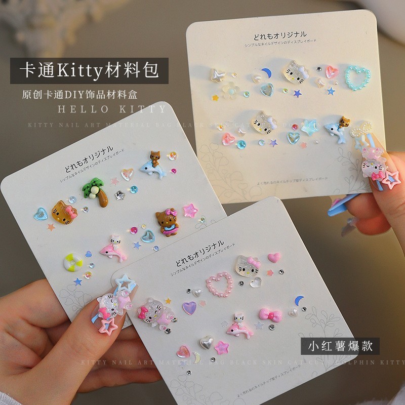Rou Bao Nail Kitty Material Caixa De Cartoon Sanrio Cat Heart Bow Pearl Girly Pregos Coloridos Decorações Arte De Bricolage