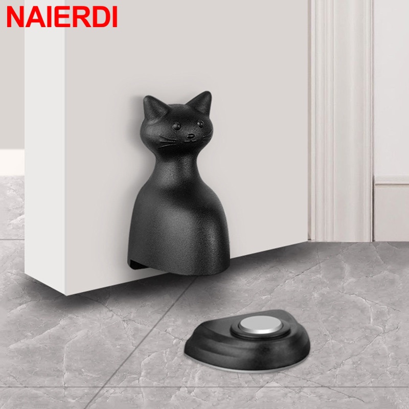 Naierdi ABS Batentes de Porta Criativa em Forma de Gato Tampa Magnética Não-furo Suporte de Porta Anticolisão à prova de vento Sucção da Porta Anticolisão