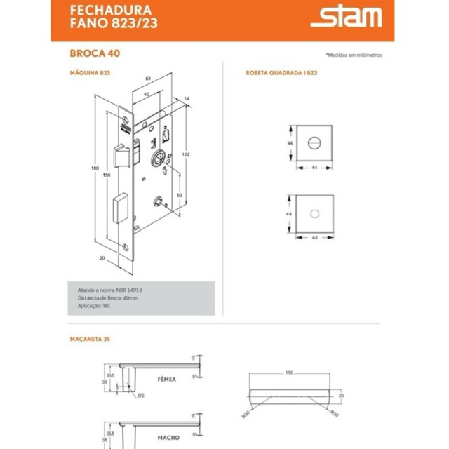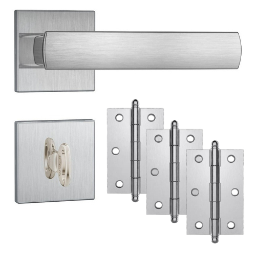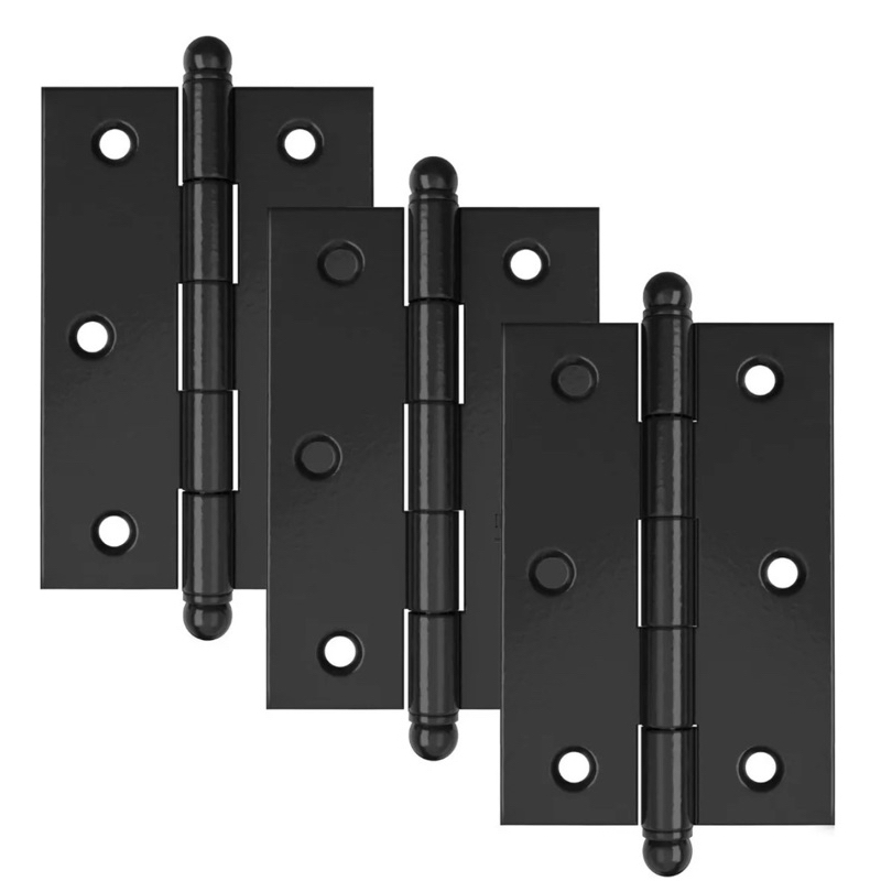 Kit Fechadura Banheiro 823/35 Preto Fosco Stam + 3 Dobradiças em Aço Pretas com Parafusos