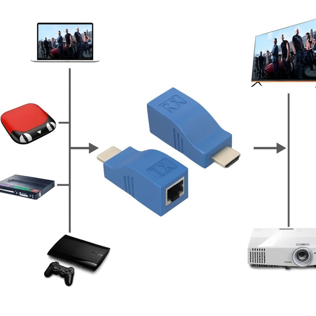 Extensor Conversor Hdmi Via 1 Cabo Rede Rj45 4k 30m Cat5e/6