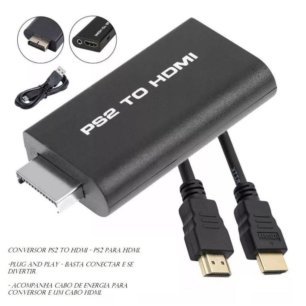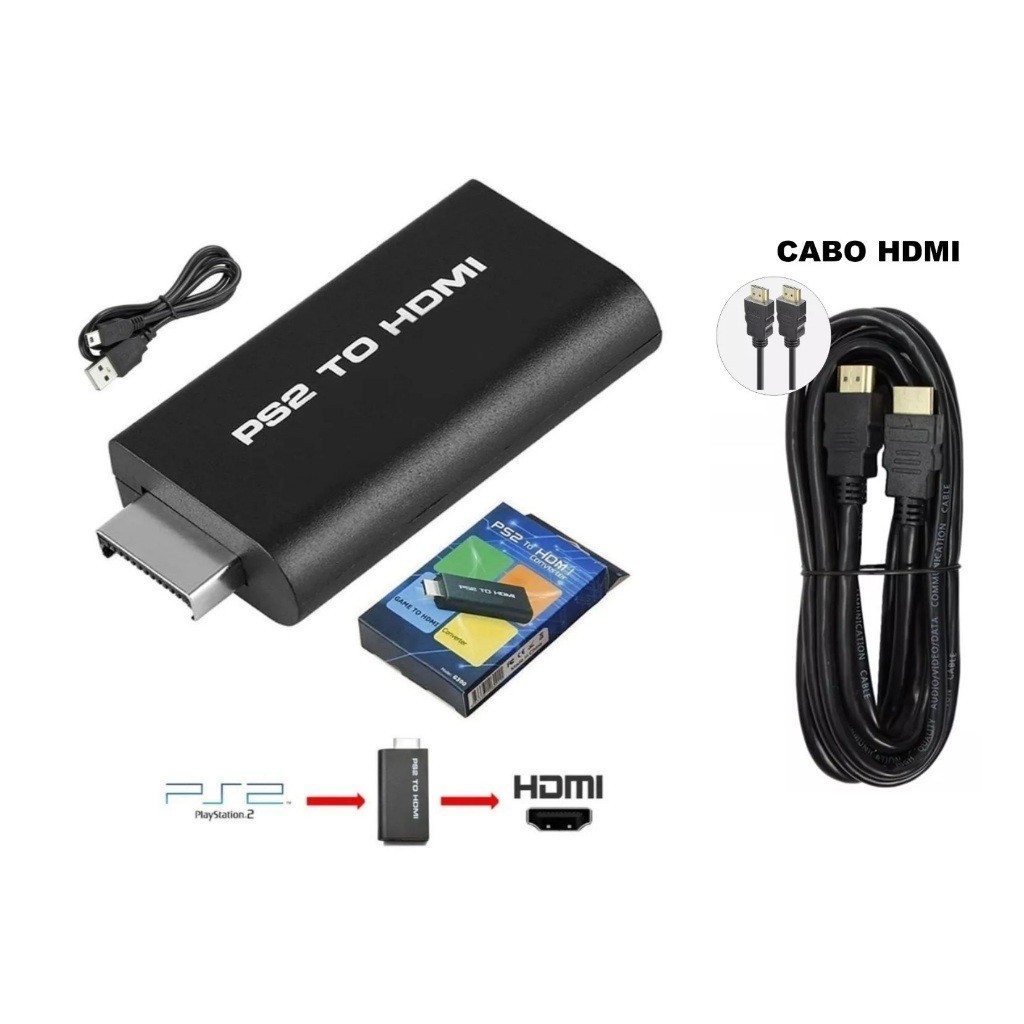 Adaptador Conversor Ps2 Áudio & Vídeo - AV Para Cabo Hdmi Com cabo HDMI 3 Metros.