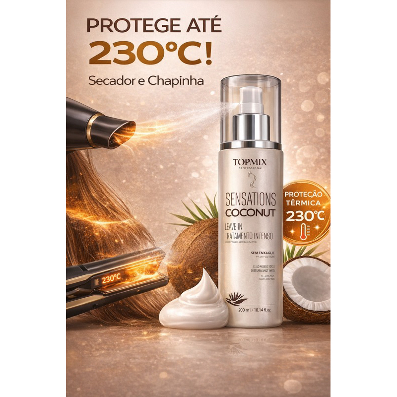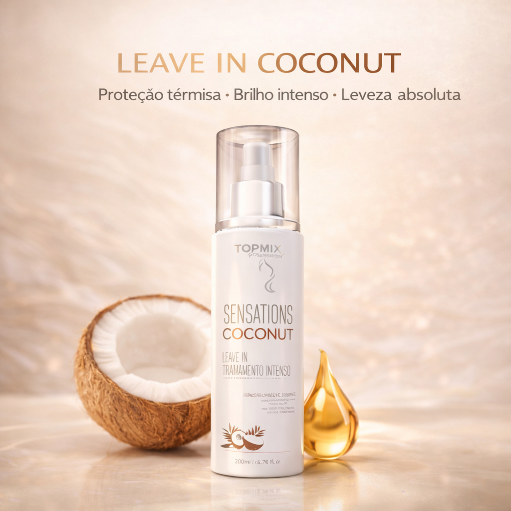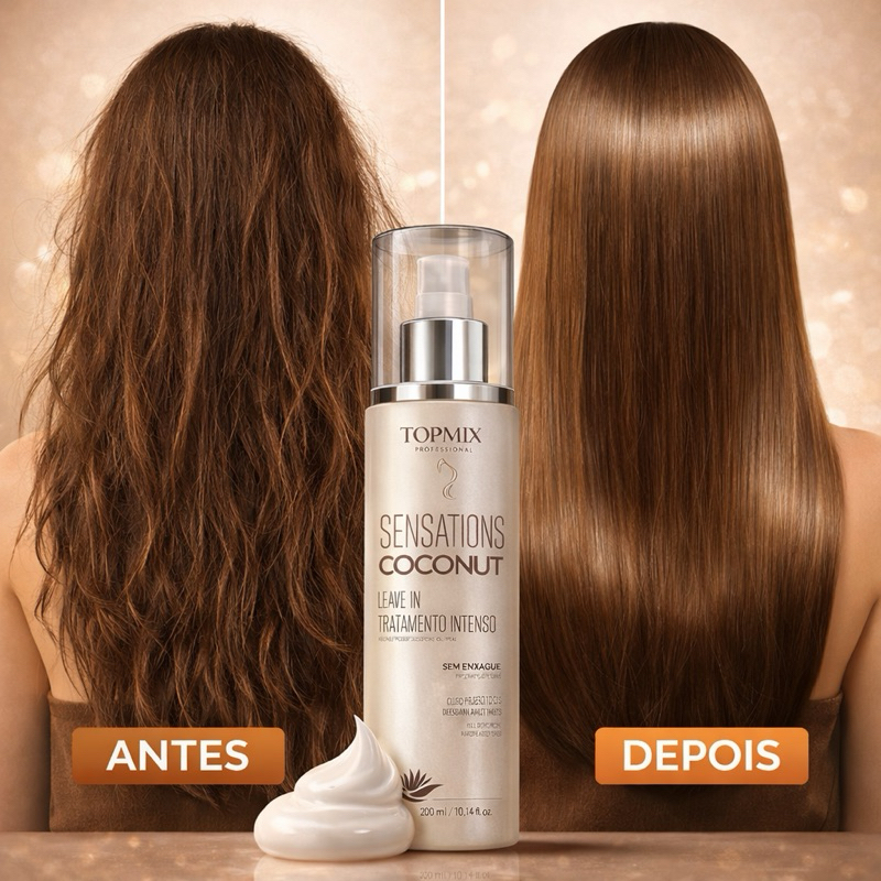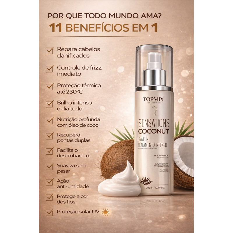 Leave In Coconut 10 em 1 TopMix Profissional – Protetor Térmico, Brilho, Hidratação e Anti-Frizz