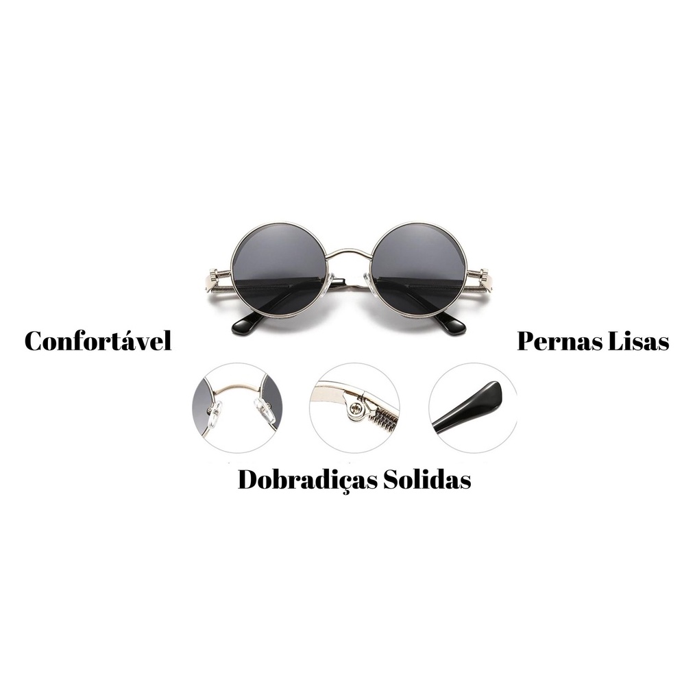 Óculos De Sol Alok Aço Modelo Redondo Steampunk Promoção