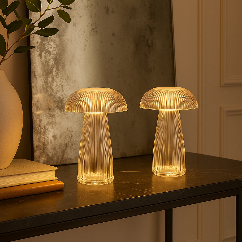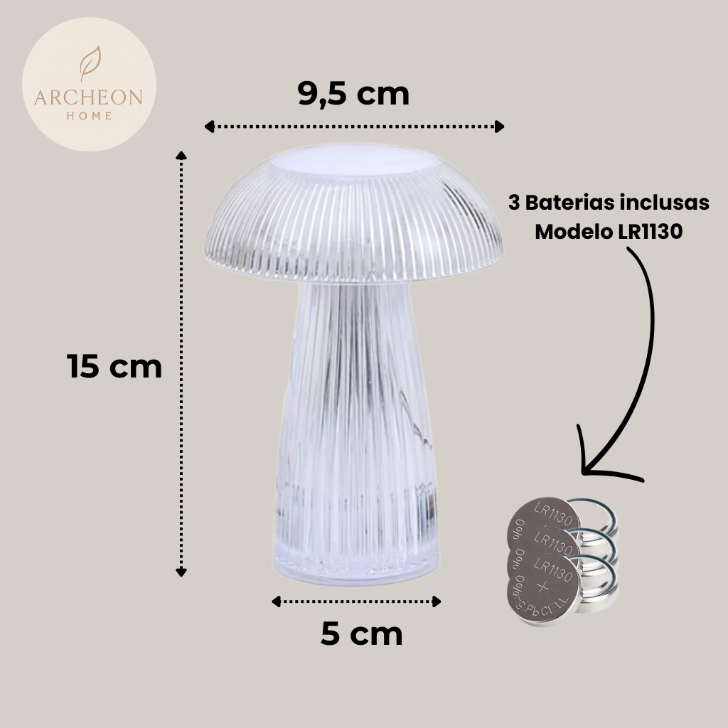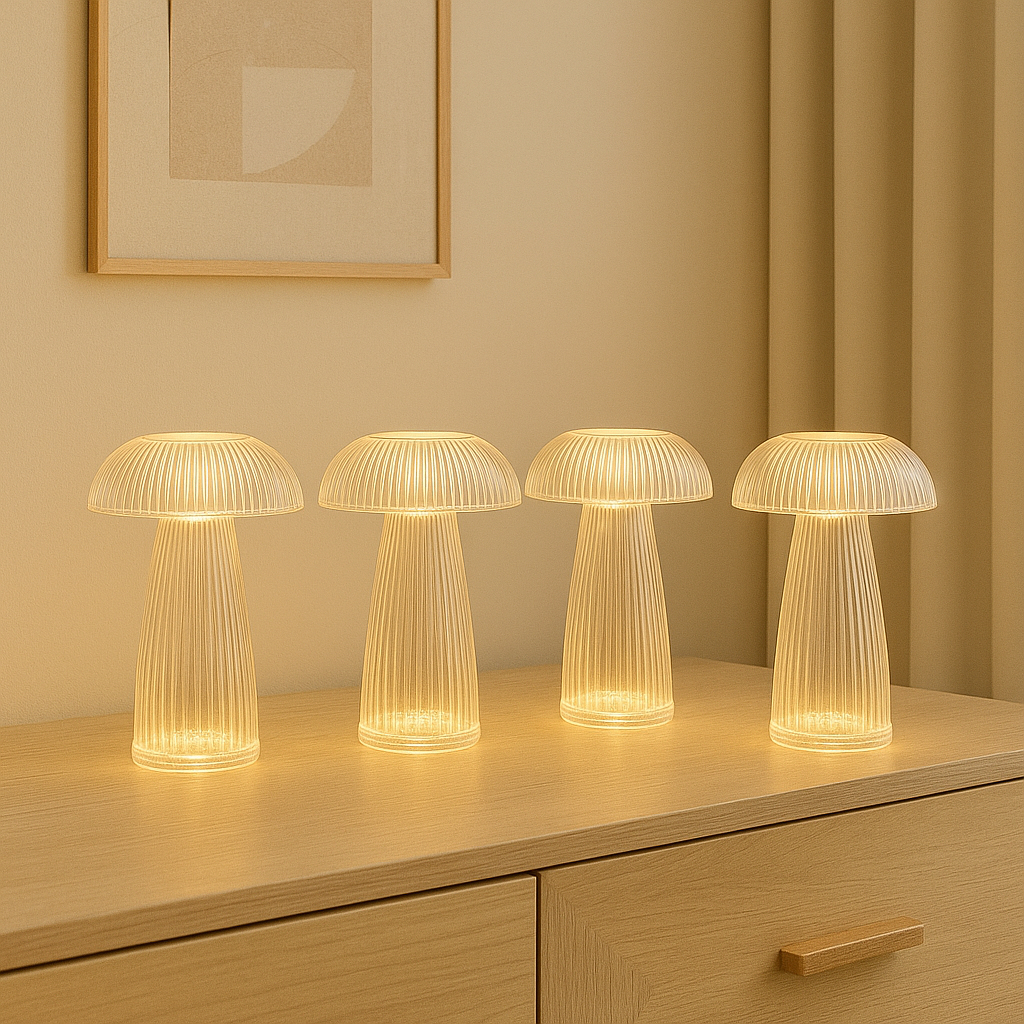 Luminária Cogumelo LED Transparente 15cm Abajur Decoração Moderna Minimalista