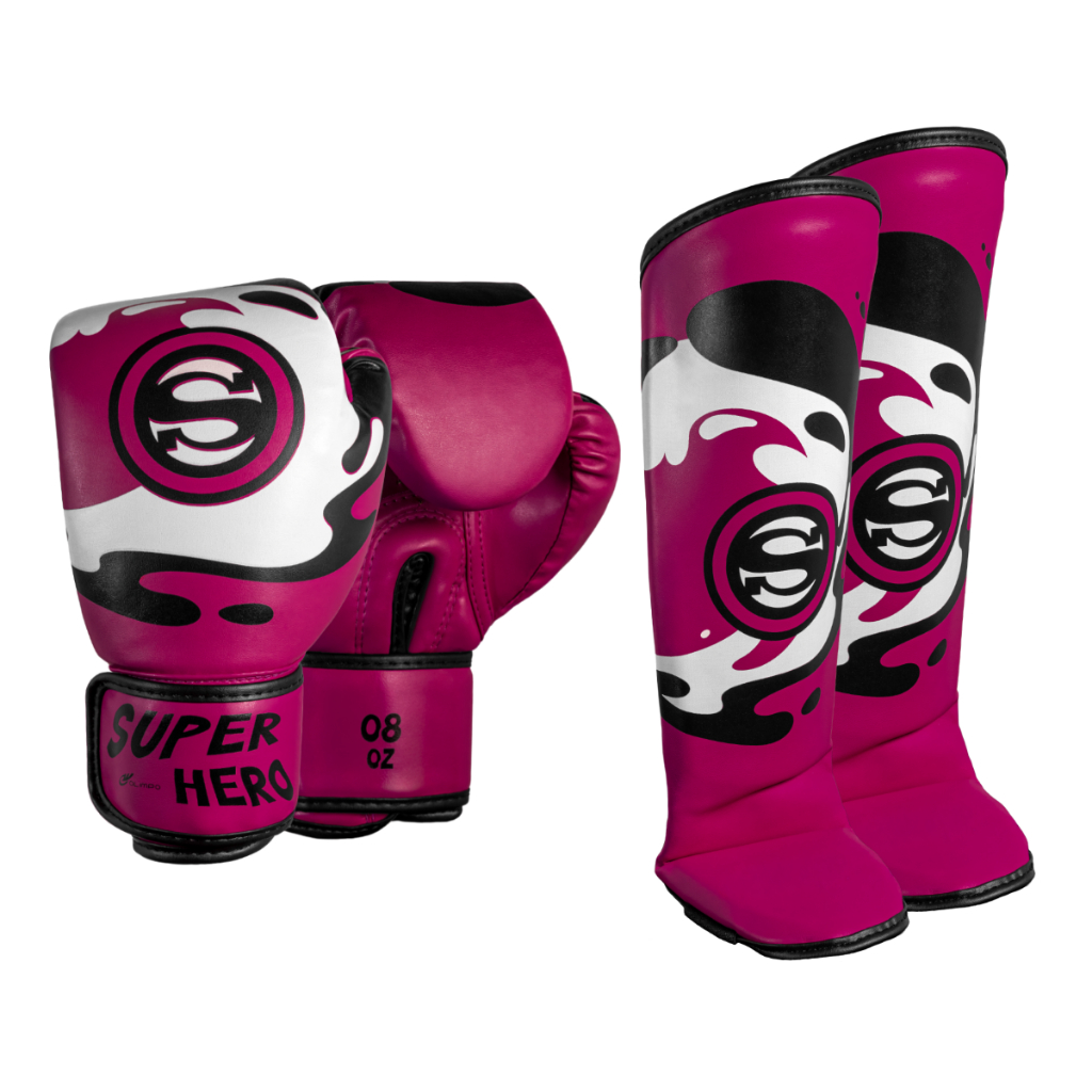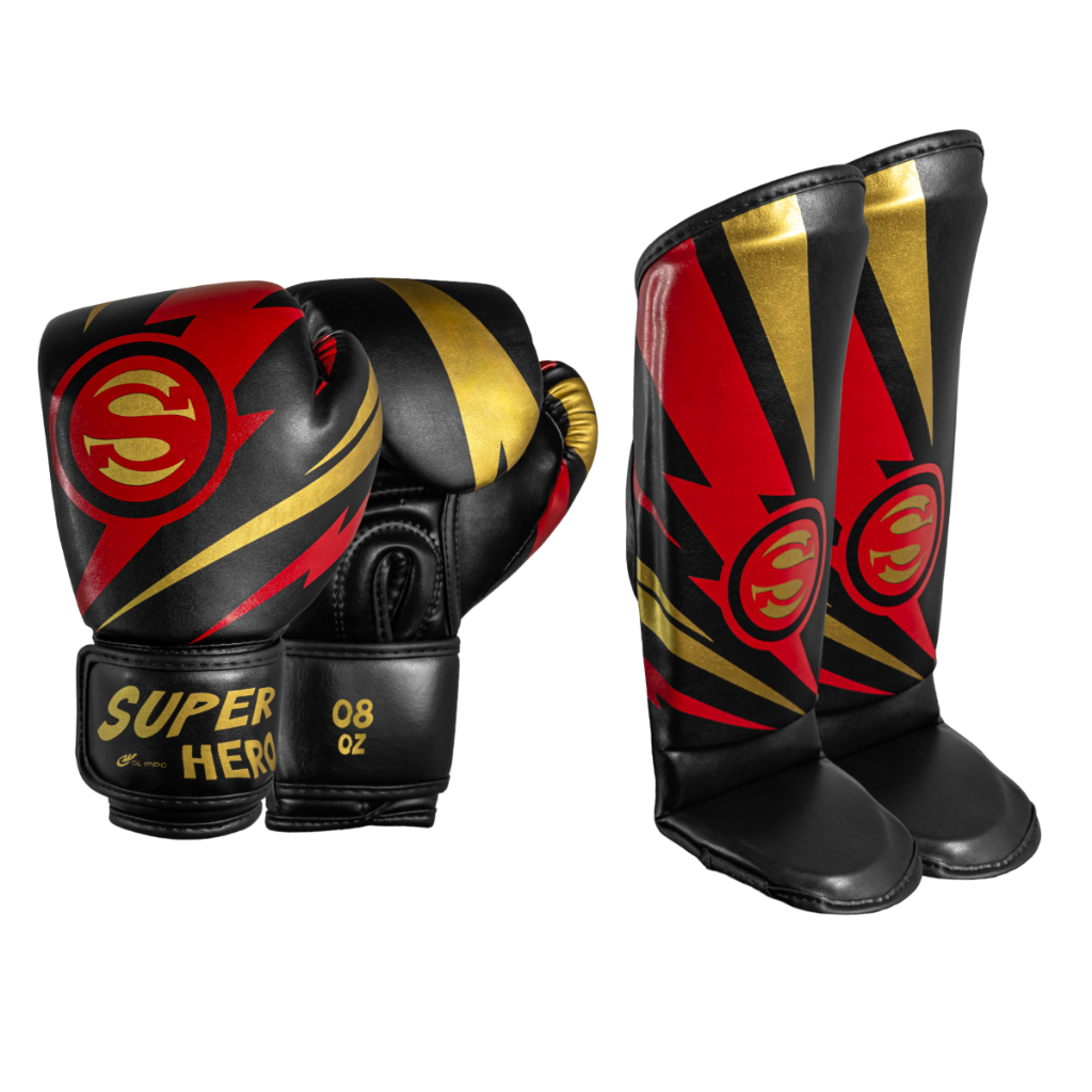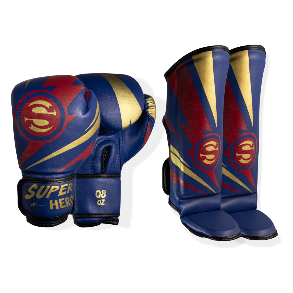 Kit Muay Thai Infantil Luva + Caneleira Super Hero Olimpo Esportes