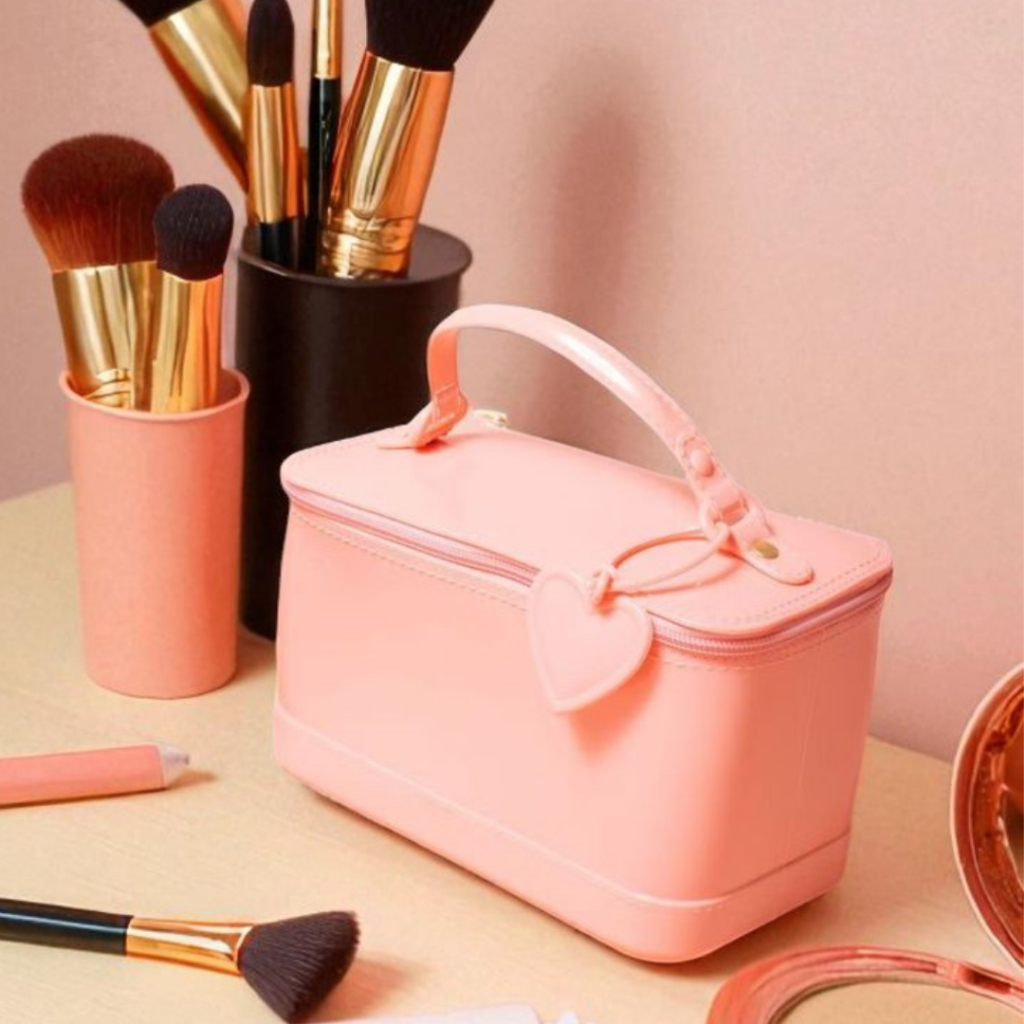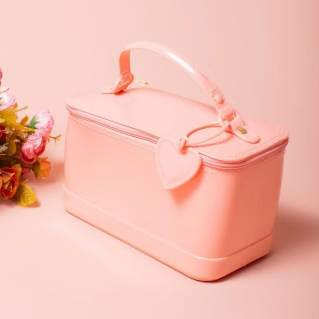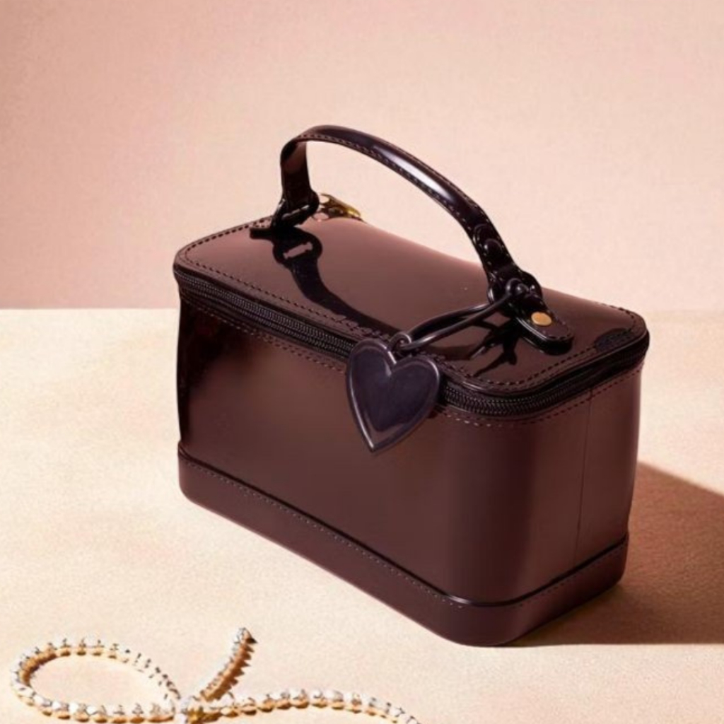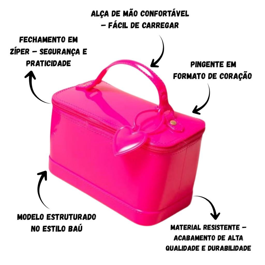 Bolsa Feminina Necessaire Baú Estruturado com Coração – Bolsa de Mão Pequena