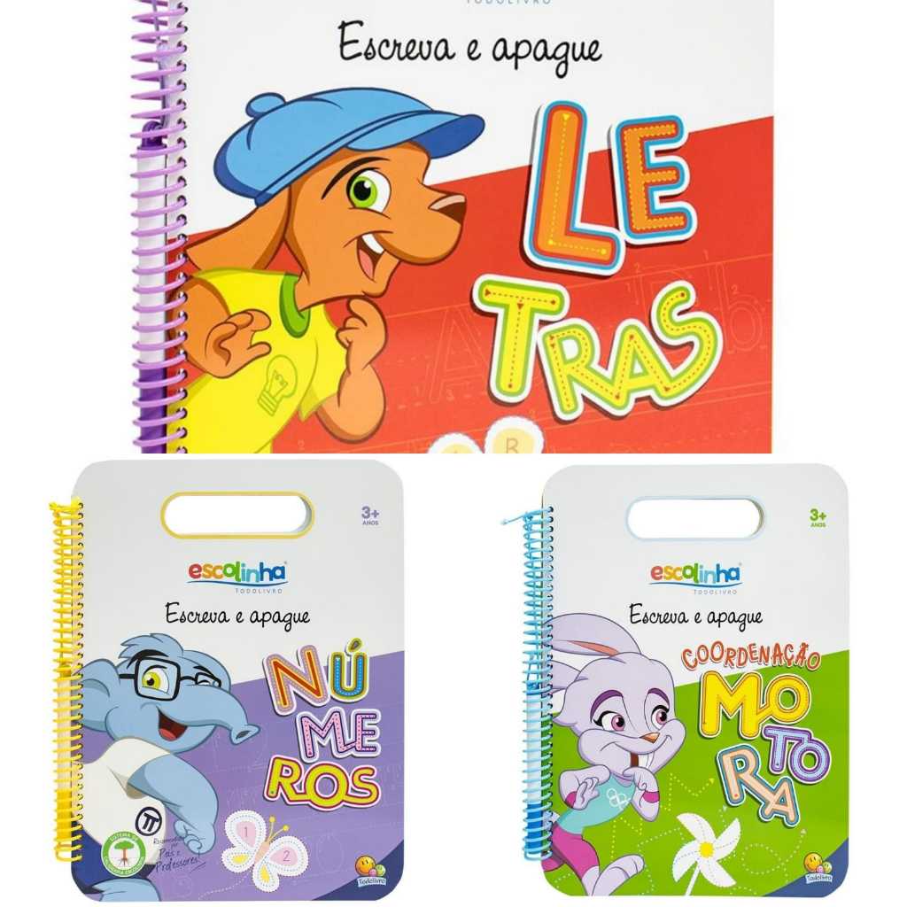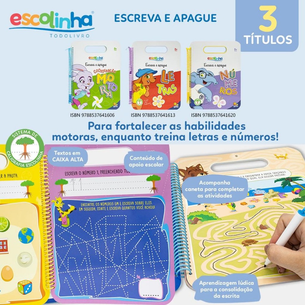 Livro Escreva e Apague – Coordenação Motora, Números e Letras (3 Livros no kit ou individual)