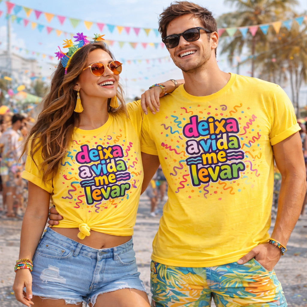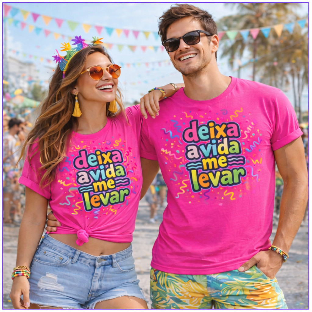 top Kit Camiseta Carnaval Deixa a vida me levar Folia Festa Verão Unissex 100% Algodão entregarapida