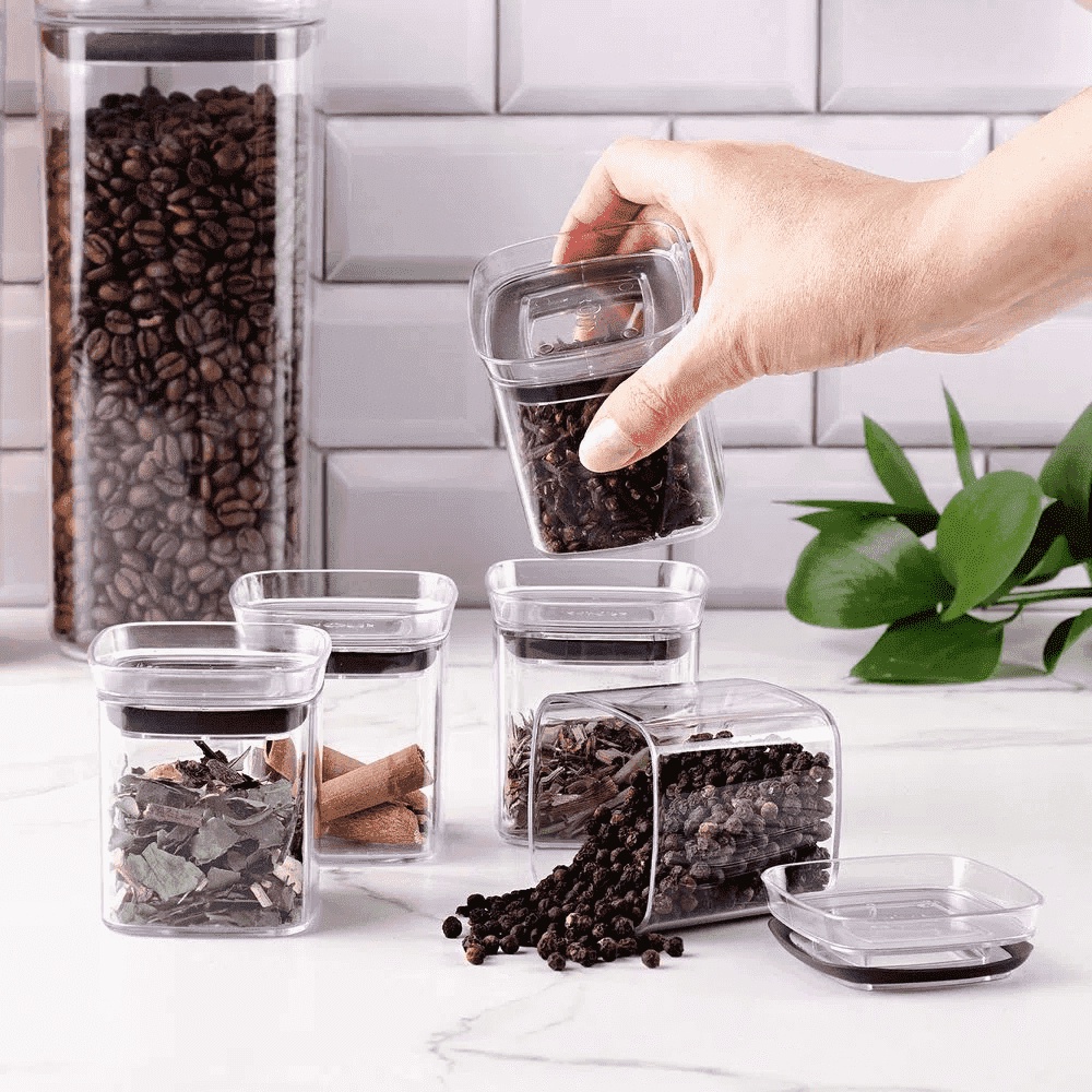 Potes Hermético Porta Condimentos Tempero Quadrado Clear 6 Peças Ou