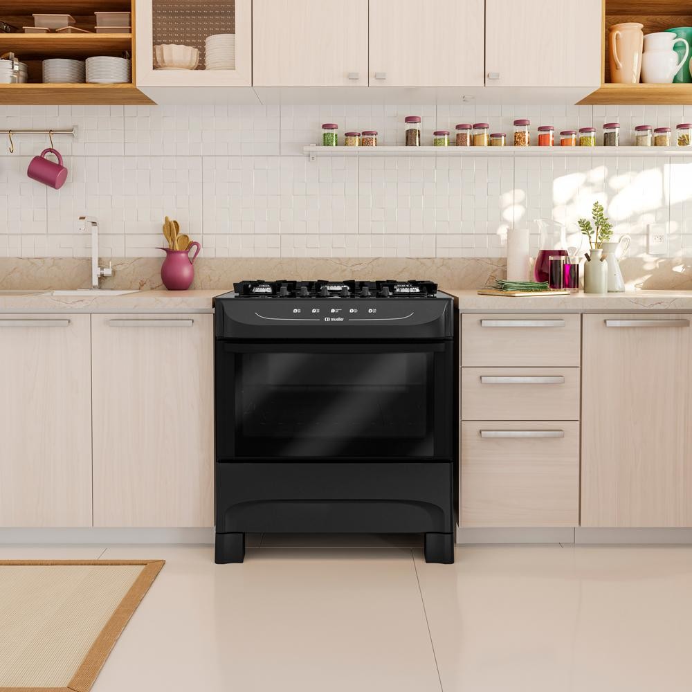 Fogão Mueller 5 Bocas Mesa de Vidro e Acendimento Automático MFV5BB